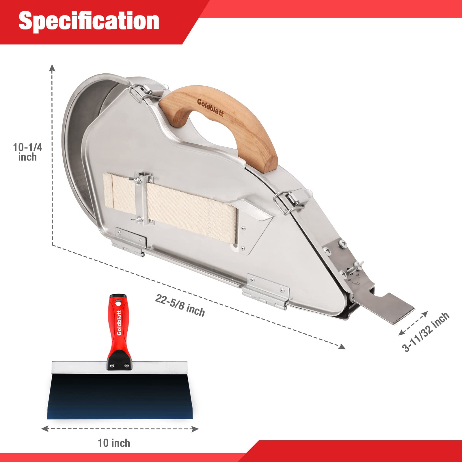 -Comfortable: Drywall Banjo board taping tool are designed with on handle strap on left for easy carrying and one wood handle on top for comfortable grip, which is labor-saving and high-efficiency. The blue steel taping knife is designed with soft handle with hanging hole, very comfortable to use and easy storage
