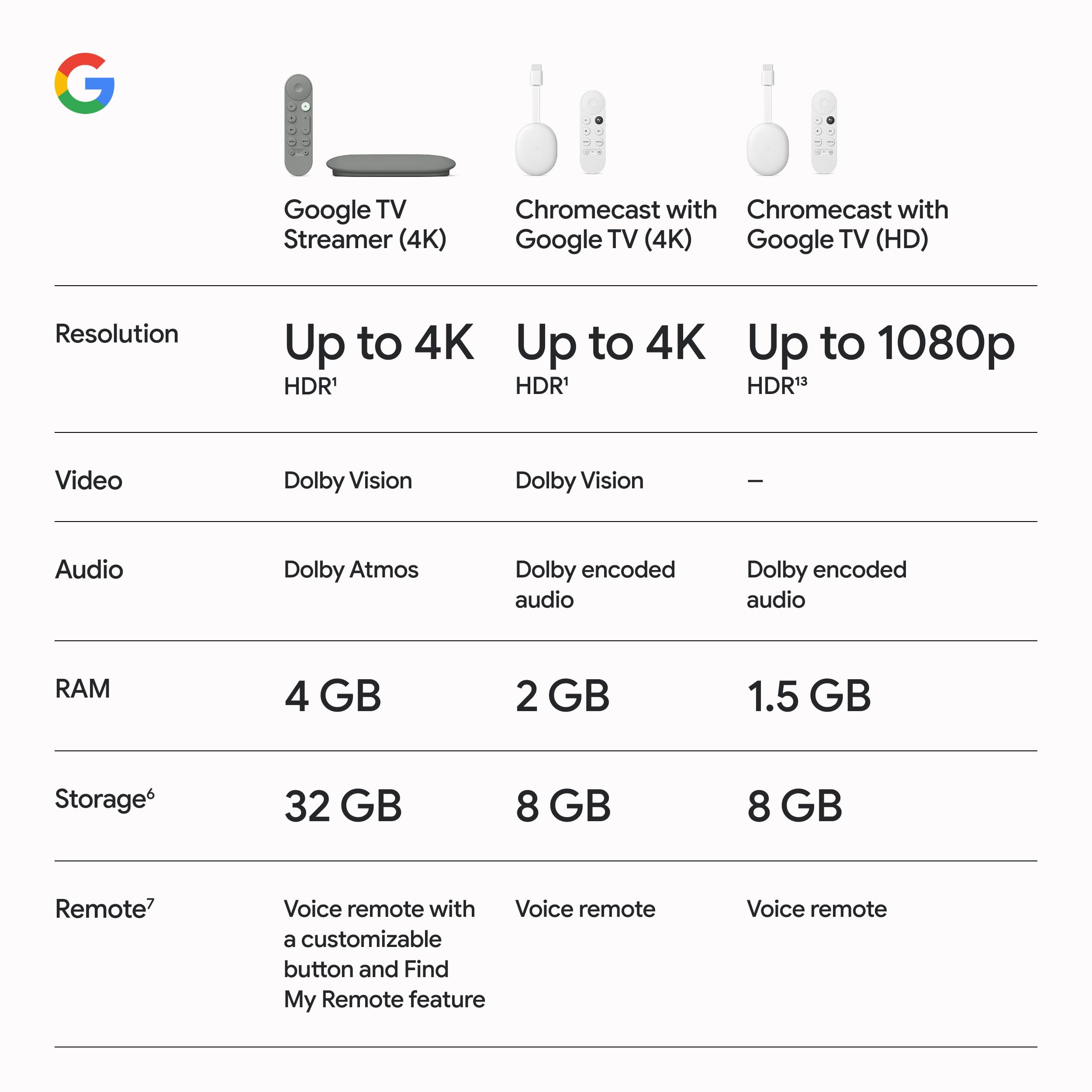 -The Google TV Streamer (4K) has a 22% faster processor and twice the memory of the previous generation for smooth navigation and quick switching between apps[5]; with 32 GB of storage, you can install more of your favorite apps[6,2]