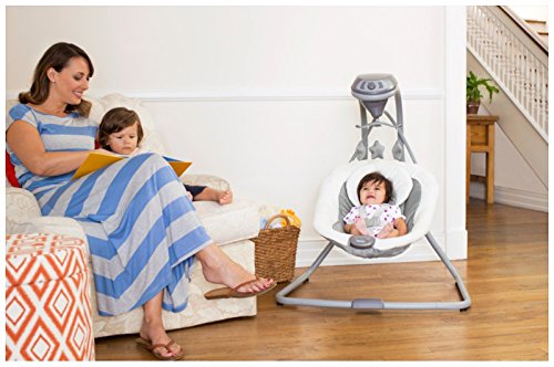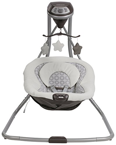 Product Description The Graco Simple Sway Swing is fully featured to help you soothe and comfort baby. Gentle, side-to-side swaying and 6 different speeds allow you to customize to baby's preference. This swing also features 15 songs and sounds, a cozy head support, and soothing two-speed vibration to keep your little one content. The option to plug in or use batteries makes this swing ideal for any room in the home. Brand Story By Graco