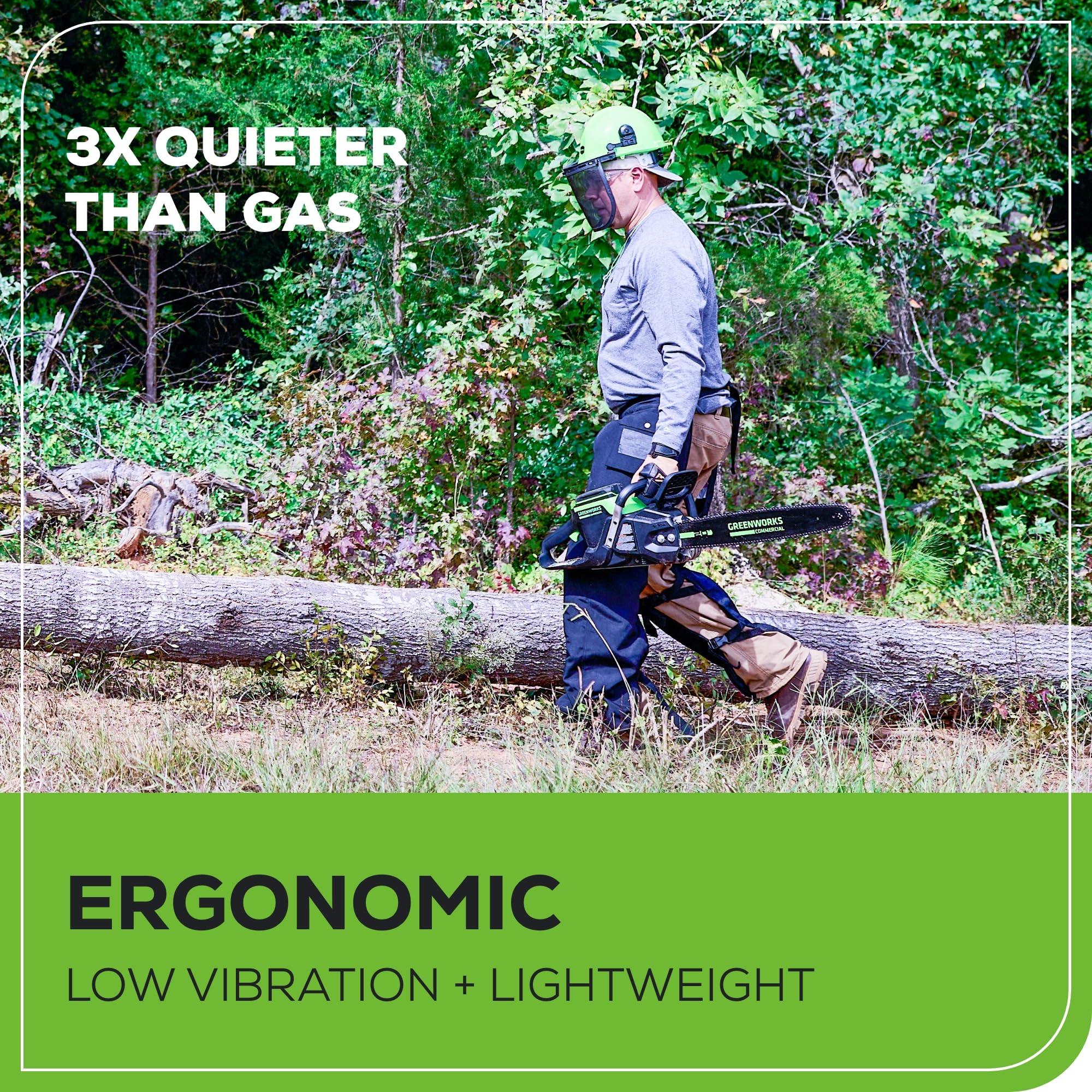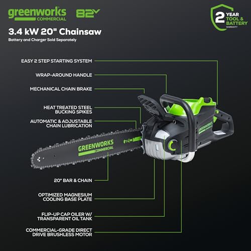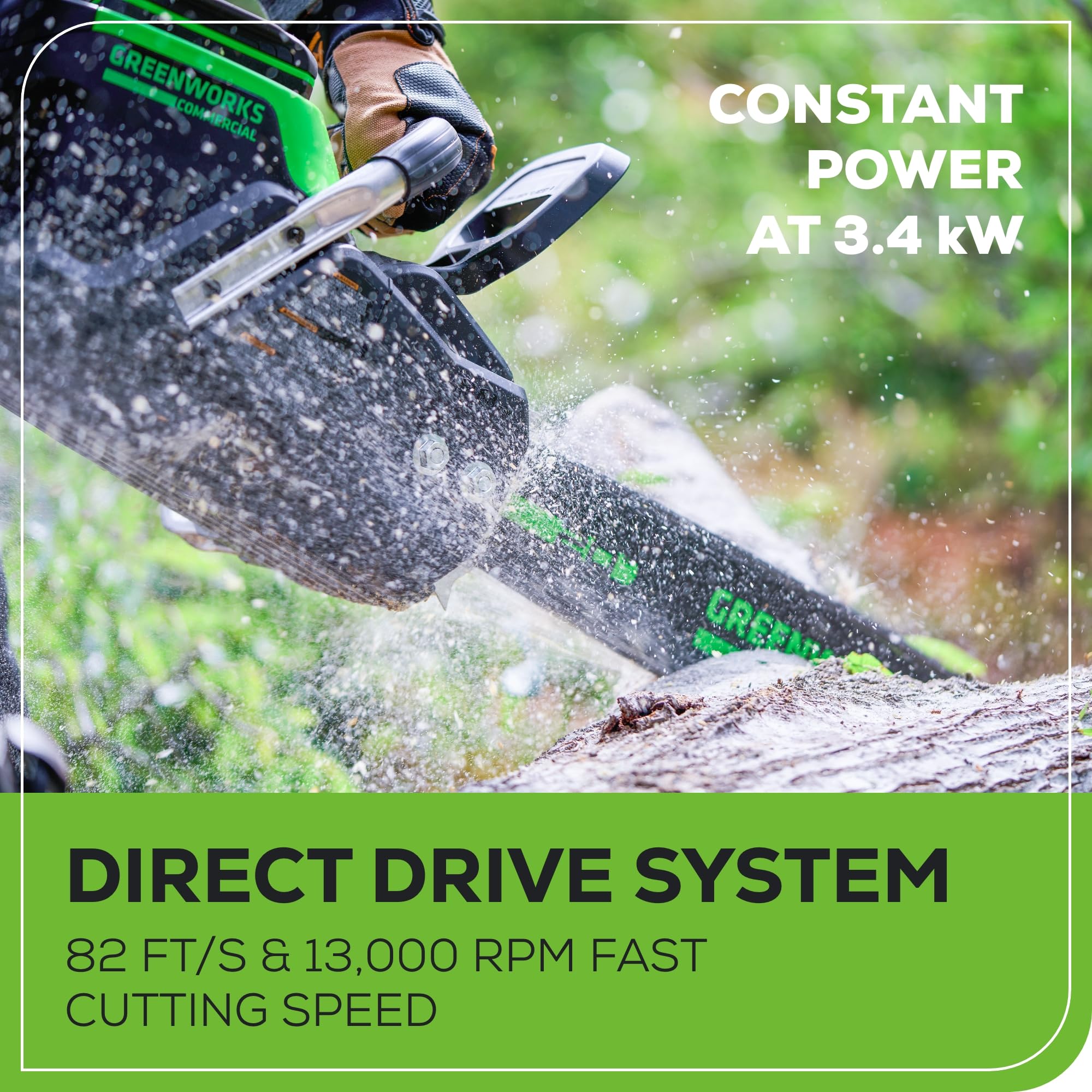 Motosierra inalámbrica Greenworks de 82 V, 20 pulgadas, sin escobillas (3,4 kW), (205 cortes por carga), batería de 4 Ah y cargador rápido de doble puerto (ideal para paisajistas y profesionales)