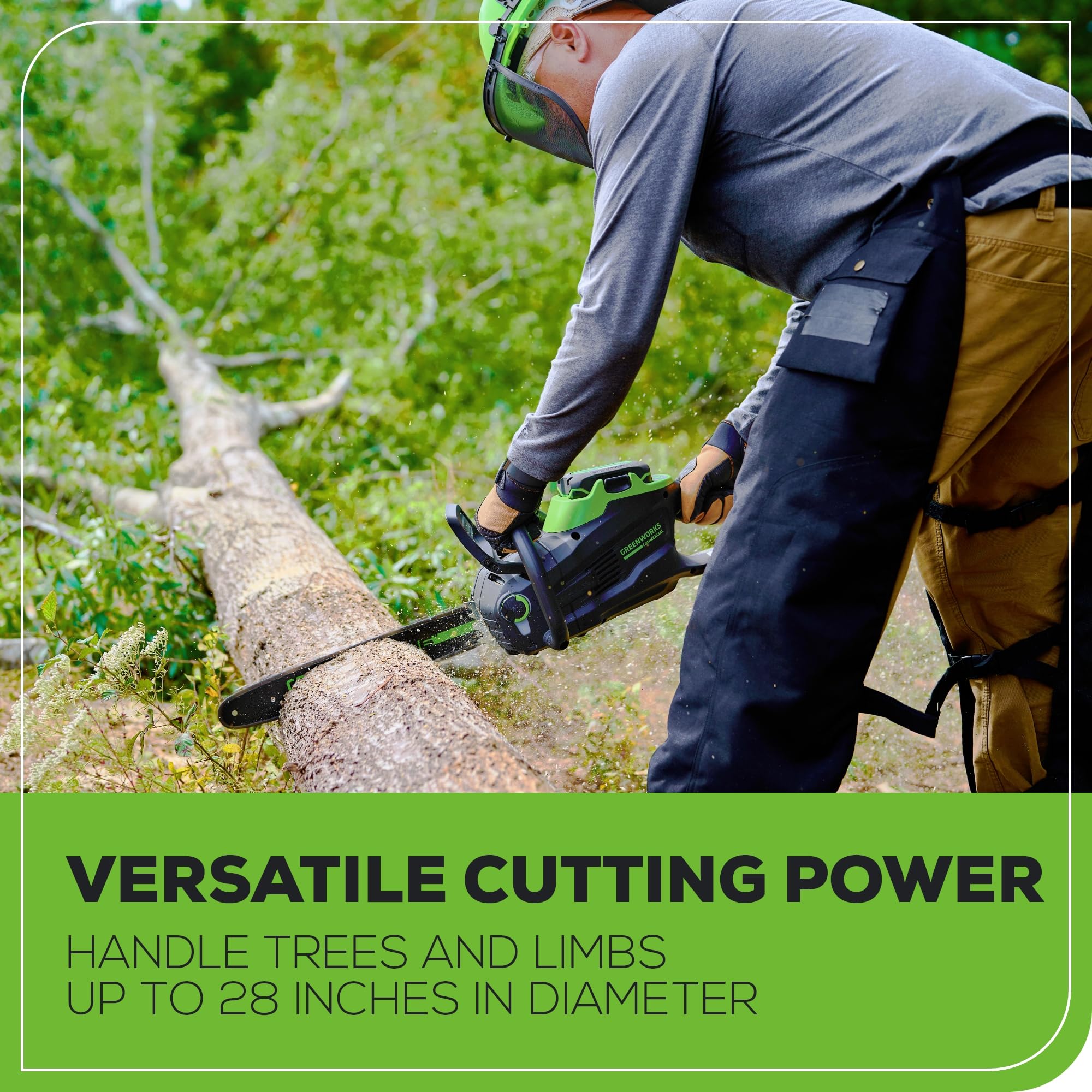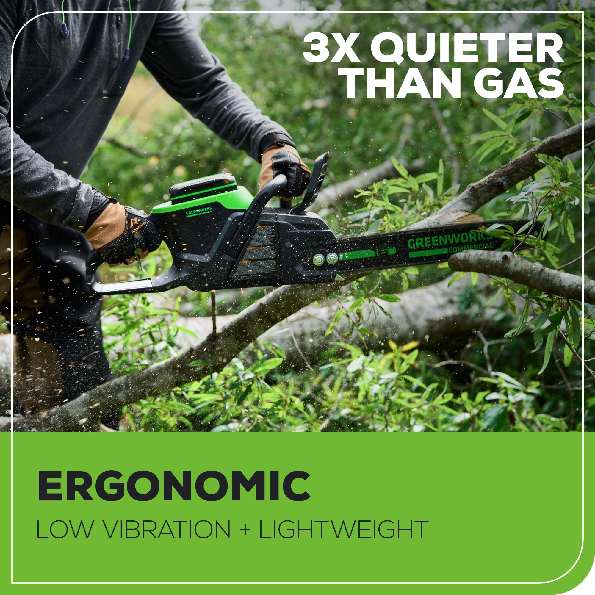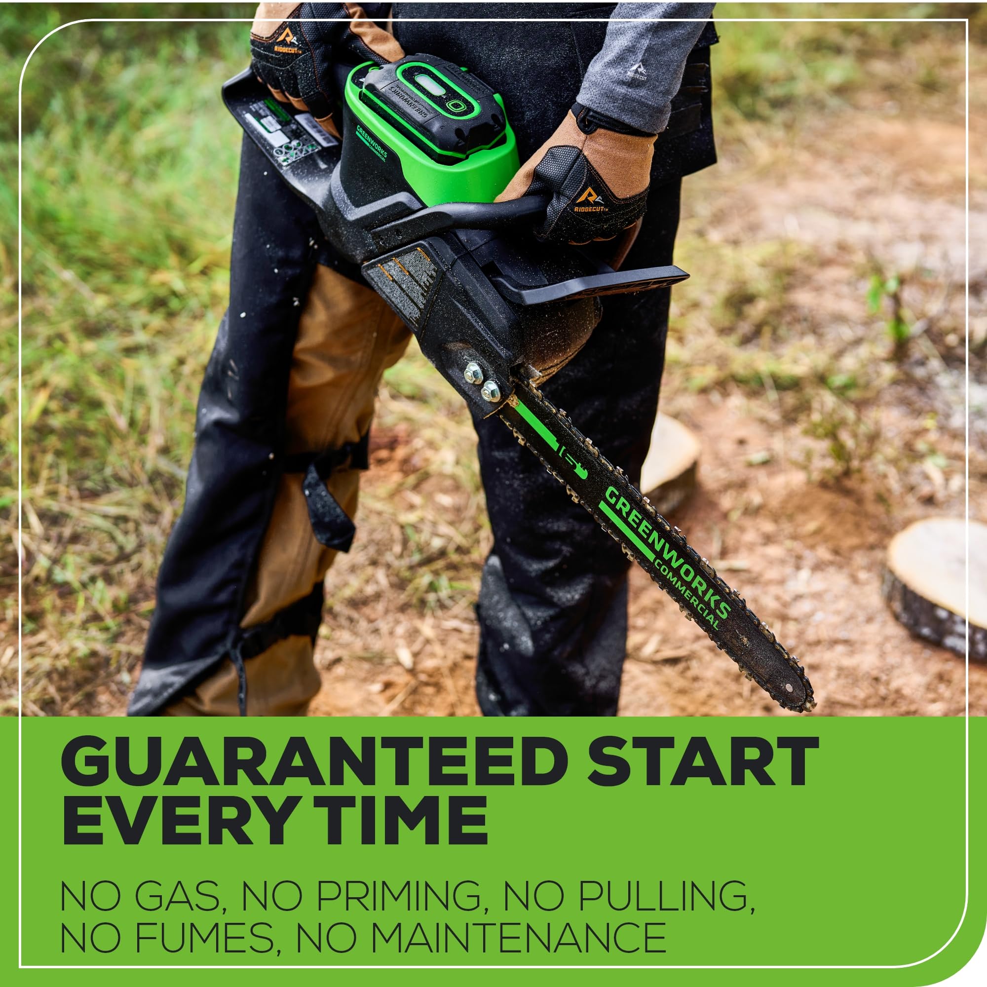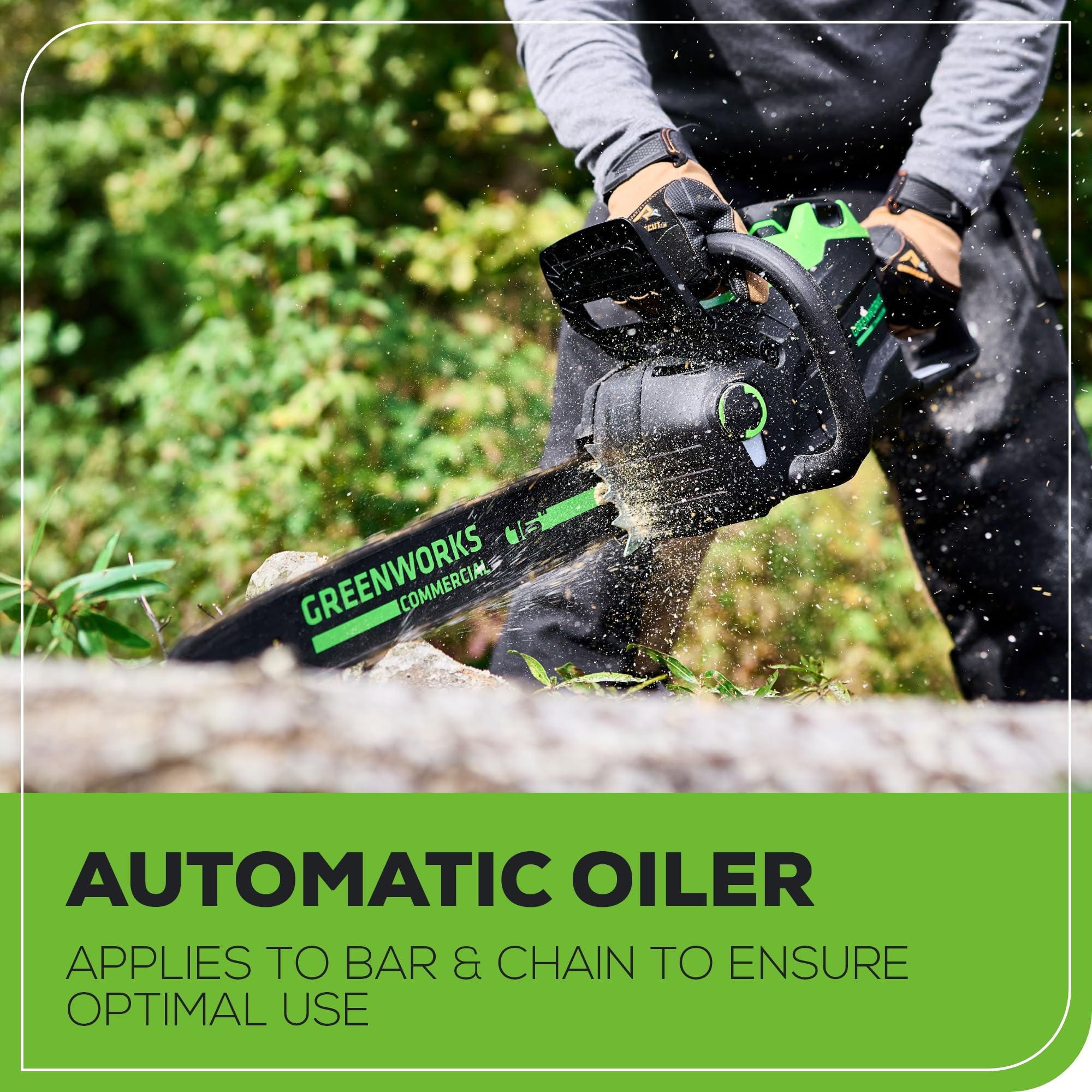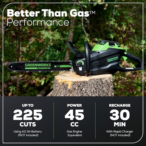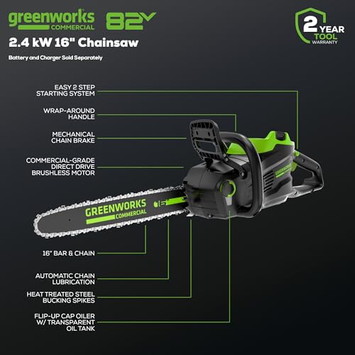 Motosierra inalámbrica Greenworks de 82 V, 16 pulgadas, sin escobillas (2,4 kW), 225 cortes por car