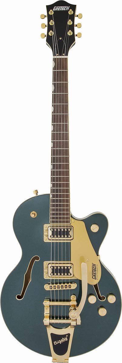 The Gretsch G5655TG Electromatic Center Block Jr. Single-Cut 6-String Electric Guitar is designed for that pure and powerful Gretsch sound at high volume. Painstakingly crafted with essential Gretsch sound, style, and playability, this guitar delivers the fearless and electrifying authenticity that has set Gretsch apart for decades. It’s the sound of honor itself, play proud. The G5655TG Electromatic Center Block Jr. Single-Cut with Bigsby and Gold Hardware features a smaller-sized body with a chambered spruce center block for dynamic resonance, high gain power, and lightweight comfort. Mechanism Offering excellent playability, the 12-inch radius laurel fingerboard hosts 22 medium jumbo frets and NeoClassic thumbnail inlays. Its dual Black Top Broad Tron humbucking pickups deliver a bold, dynamic, and articulate tone with an enhanced sonic punch. This guitar boasts stage-stealing style with a stunning Cadillac Green finish and gleaming gold pickguards and hardware, including the Bigsby B70 vibrato tailpiece, an anchored Adjusto-Matic Bridge, and G-arrow knobs.