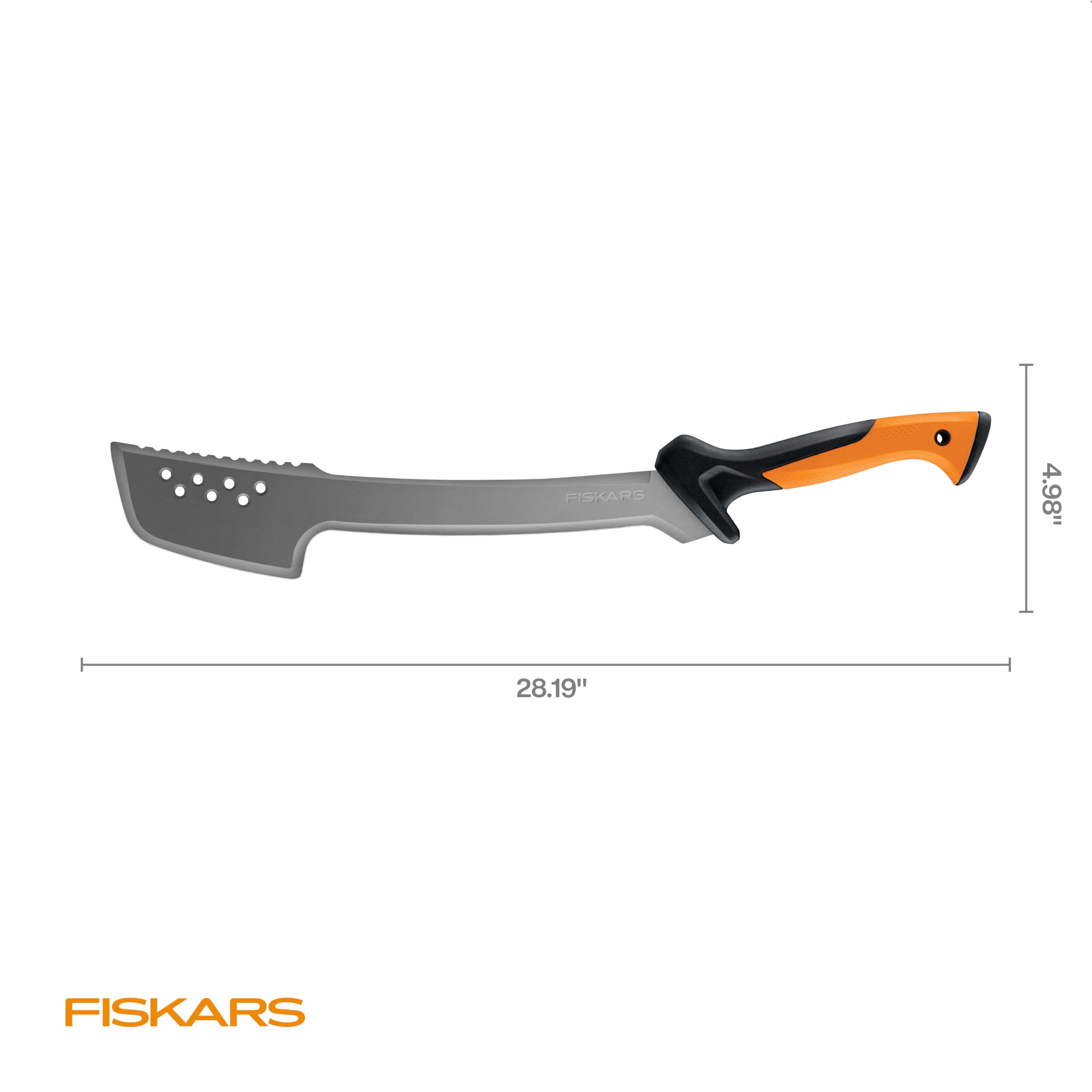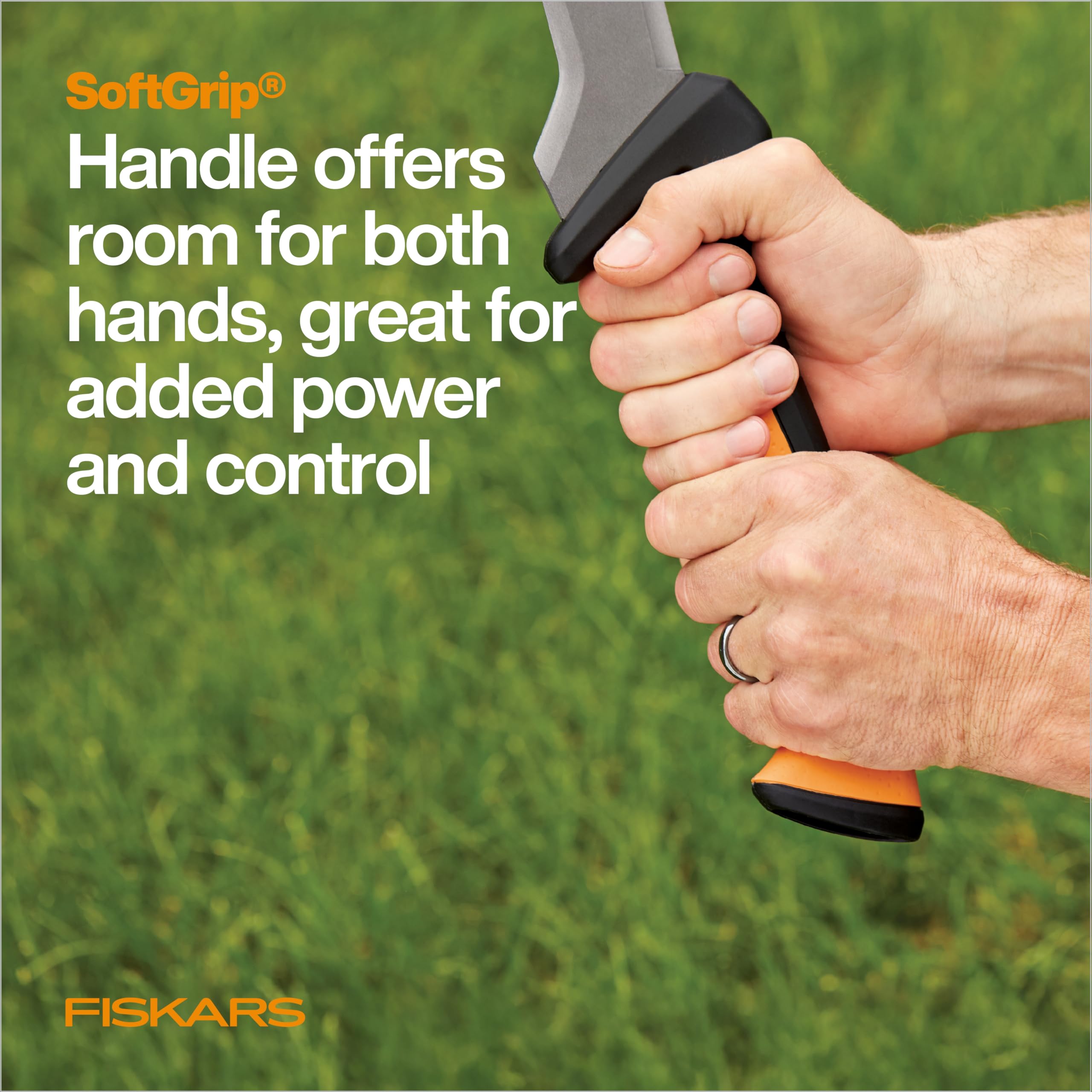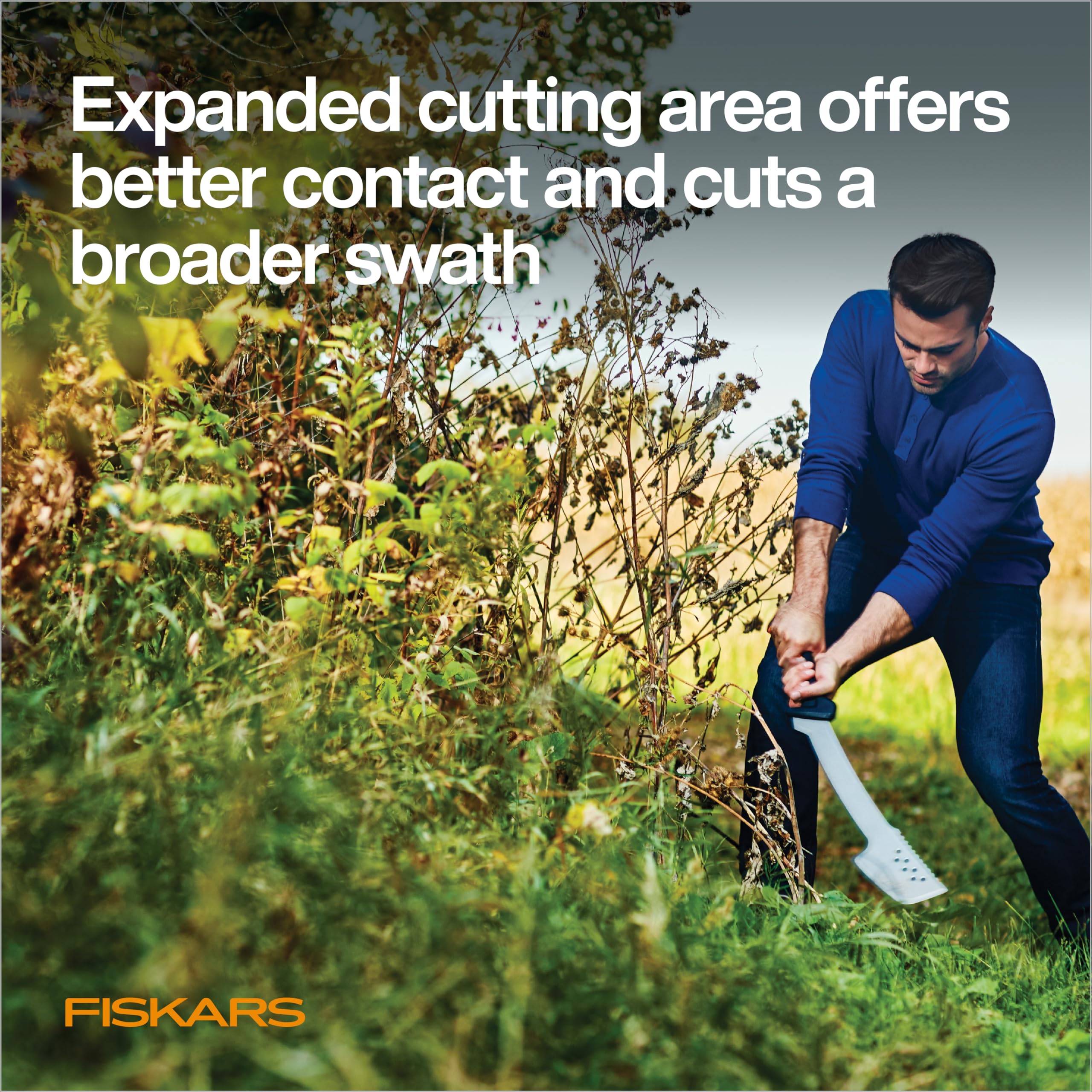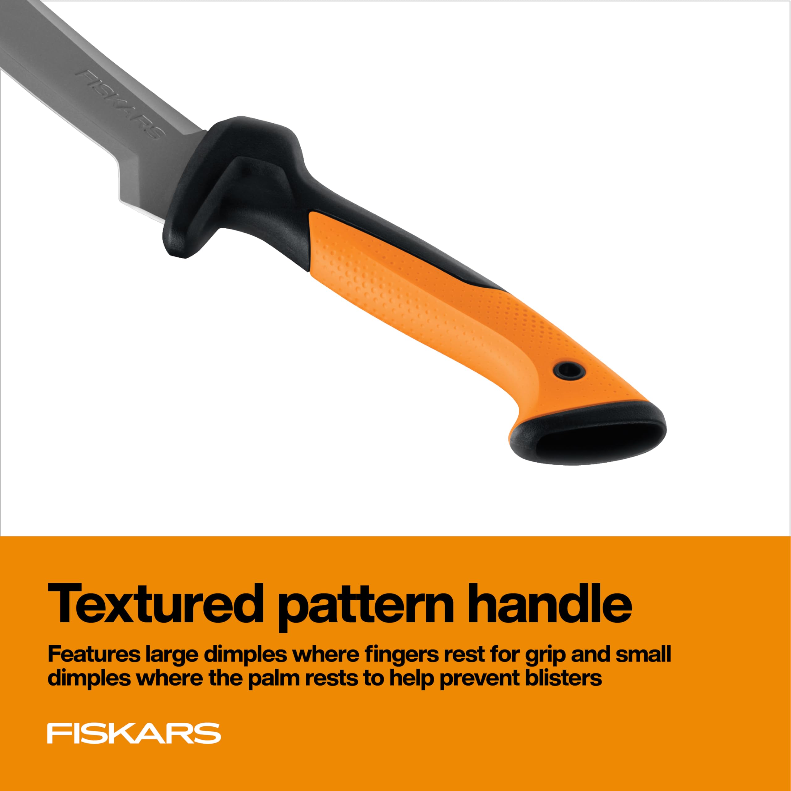 Designed for fast, powerful performance, Fiskars machete for yard work offers a better way to tame the fast-growing vegetation in your yard and garden, especially when clearing large areas or chopping through tough materials. The ultra-sharp, rust-resistant blade is thoughtfully shaped for a wide range of tasks, freeing up your other hand to pile cuttings. The comfortable performance handle design features a textured pattern, allowing you to choke up for precision work, grip the middle for general use, or grip the end to swing with maximum force. The design includes an axe-like blade head for chopping and splitting, a sharpened blade curve for quick pull-cuts, and a sharpened tip for push-cutting and chiseling in tight spaces. Designed to help you transform the backyard, Fiskars outdoor, lawn, and gardening tools are equipped with smart technologies and award-winning, ergonomic features that make it easier and more enjoyable to perform your own lawn care. From pruning shears, lawn mowers, weeding tools, and tree cutters, we take a holistic approach to develop garden equipment that reflects hours of immersive study, research, and validation, resulting in gardening supplies that outperform the competition and feel like a natural extension of your body.