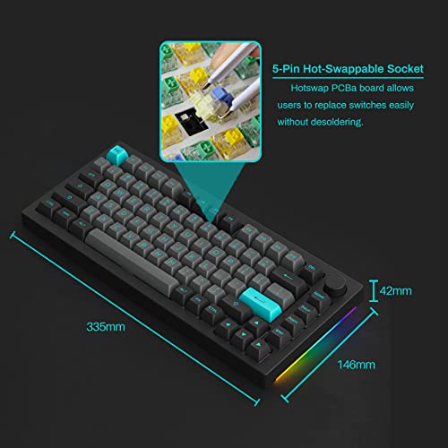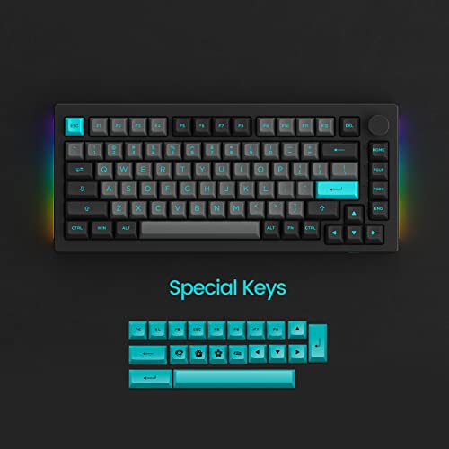 Teclado mecánico Akko 5075B Plus 75% por ciento RGB Teclado intercambiable en caliente con perilla, tema negro y cian con teclas de perfil ASA de doble disparo PBT con interruptor plateado