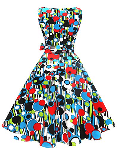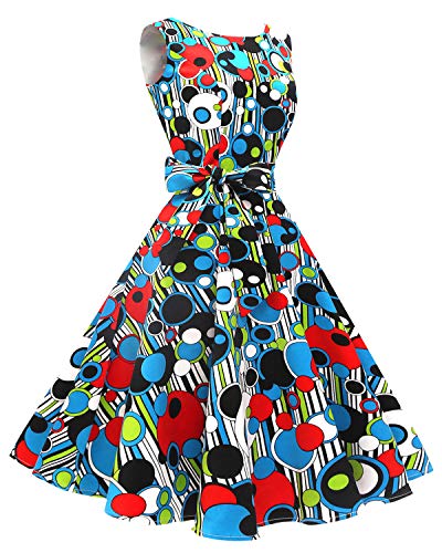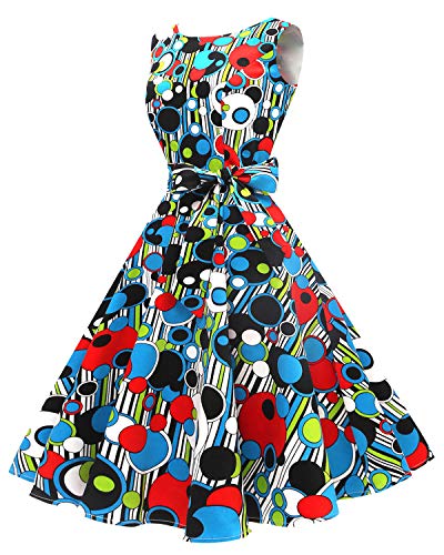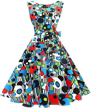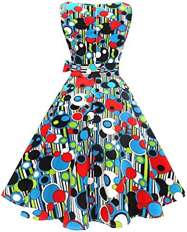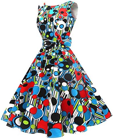 Hanpceirs Vestido de cóctel vintage sin mangas con cuello redondo sin mangas para mujer