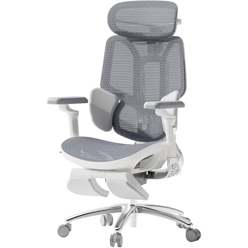Silla de oficina ultra ultra ultra ultrigonómica HBADA - con soporte lumbar dinámico de 3 zonas, reposabrazos mecánicos de 360 °, reposacabezas 4D ajustable, aleación de aluminio, malla premium, gris