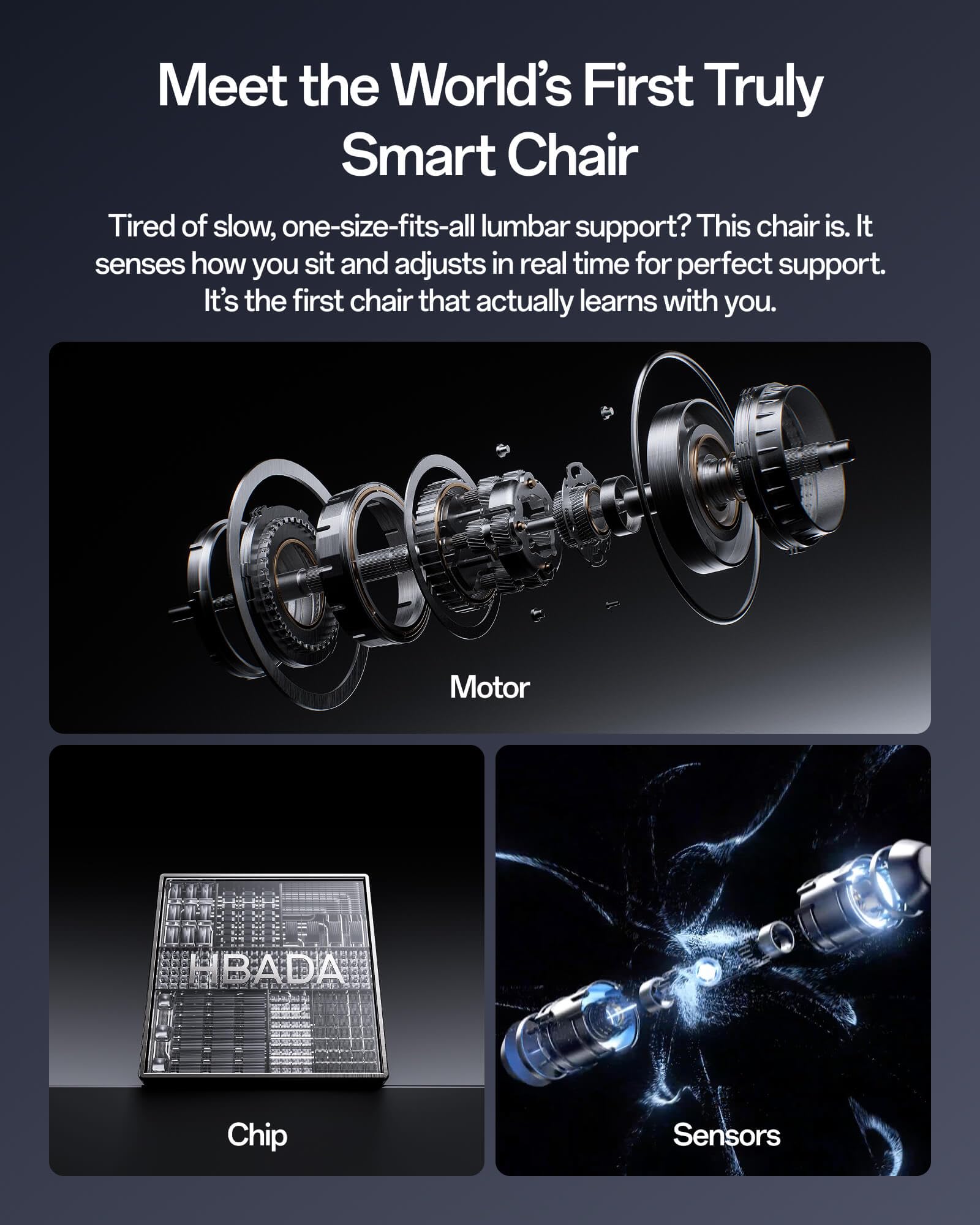 Hbada X7 Silla Ergonómica Inteligente, Silla de Oficina, con Seguimiento Lumbar Totalmente Automatizado, Reposacabezas Ajustable 4D, Reposabrazos Ajustables 720°, Cojín de Asiento Ventilado, Giratorio, Gris