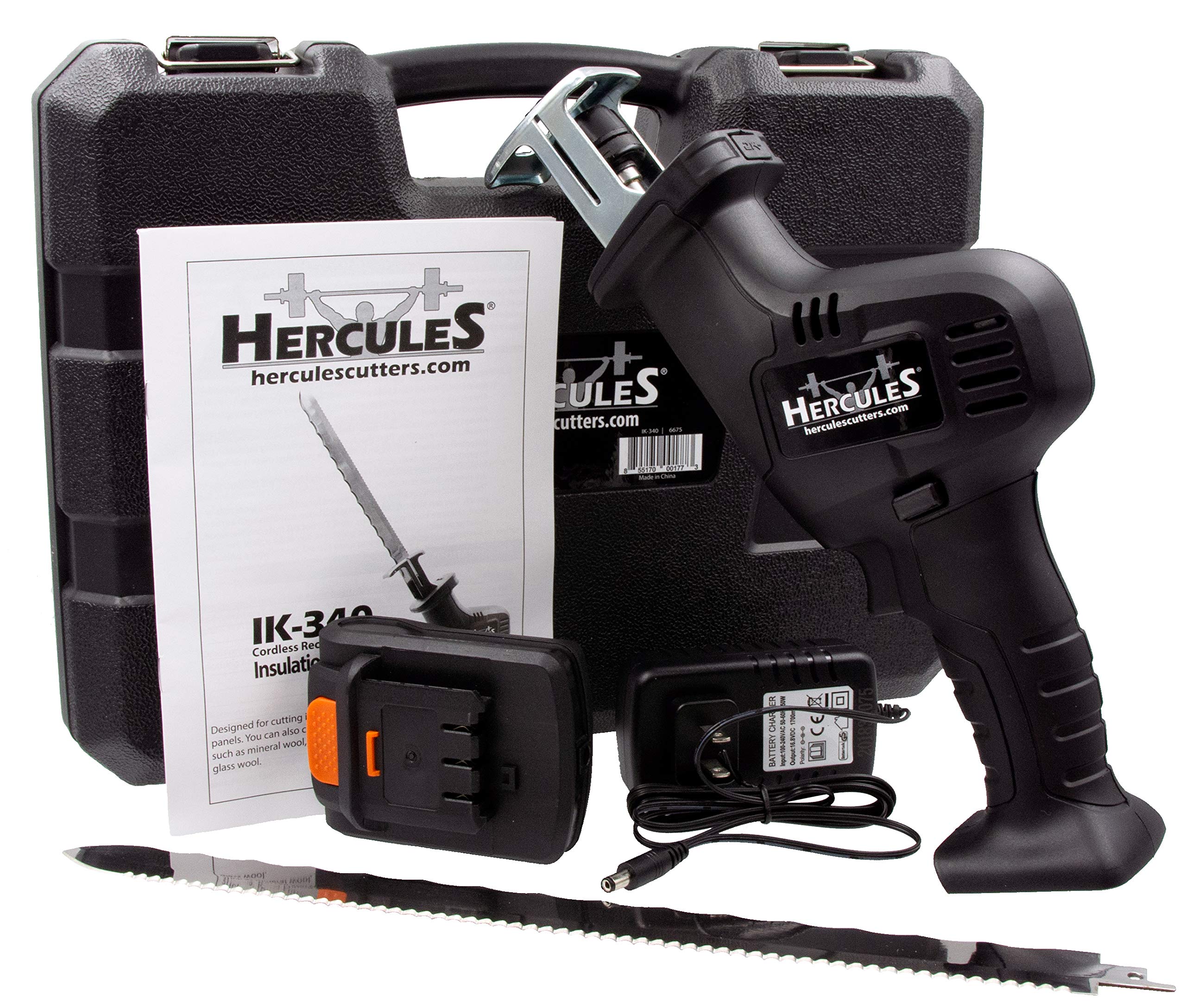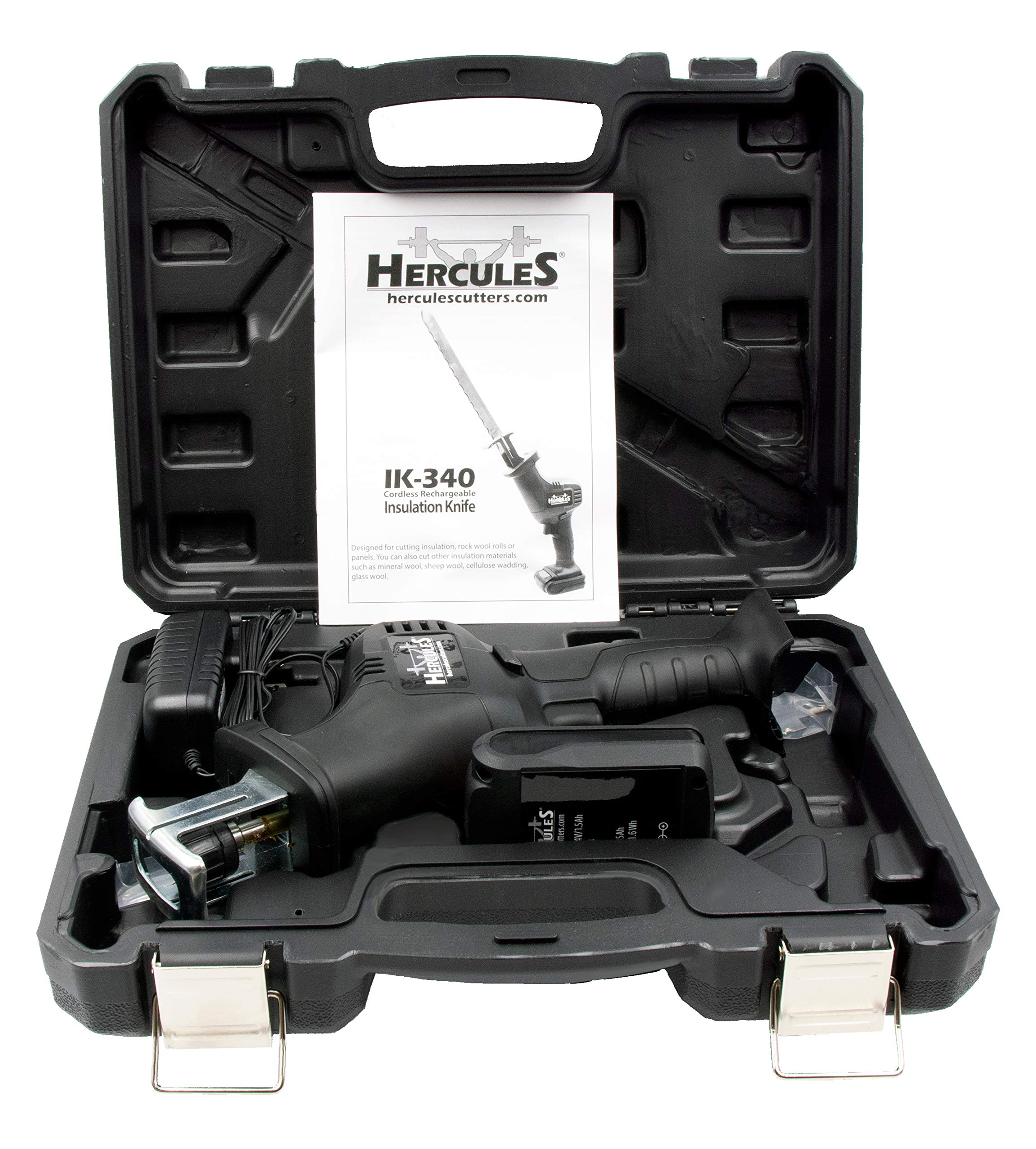 Sierra de lana mineral inalámbrica y cortadora de aislamiento Hercules, modelo IK-340 - Cuchillo dentado eléctrico para materiales aislantes minerales flexibles, lana mineral, lana de roca y fibras naturales