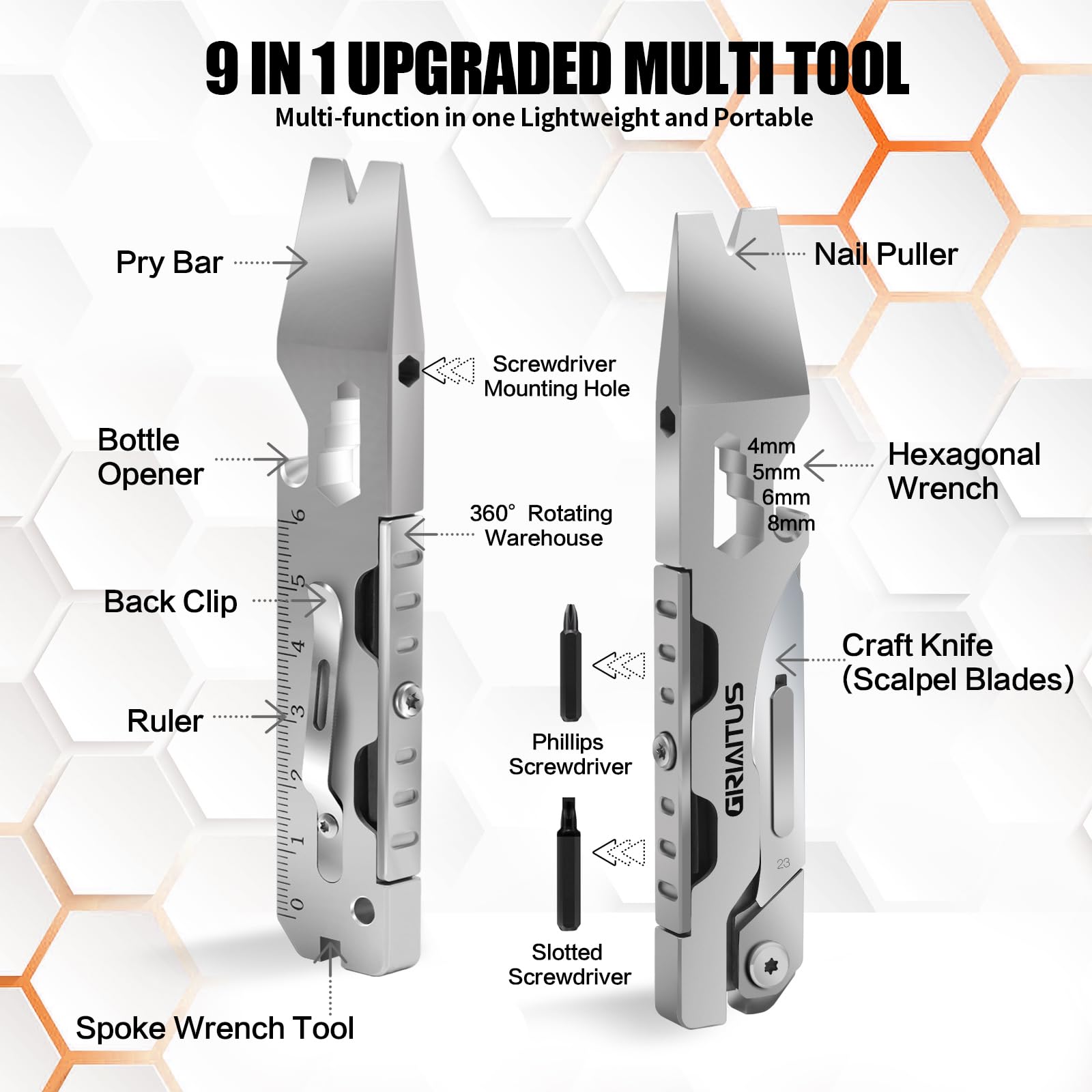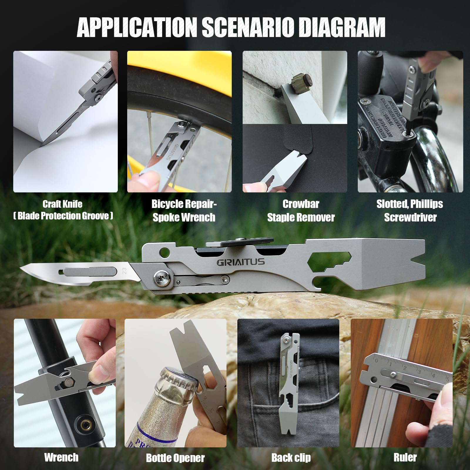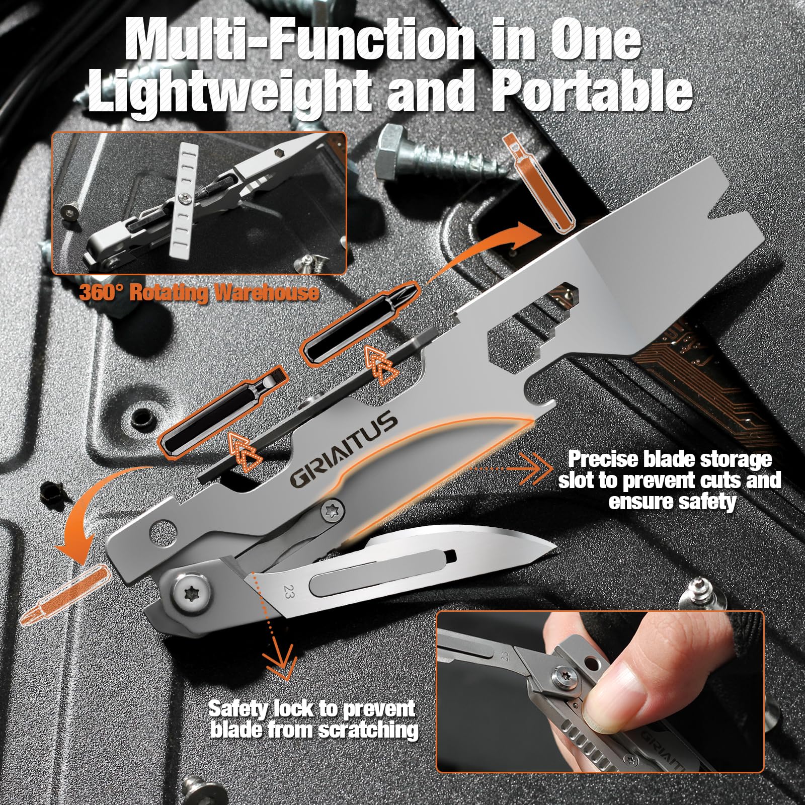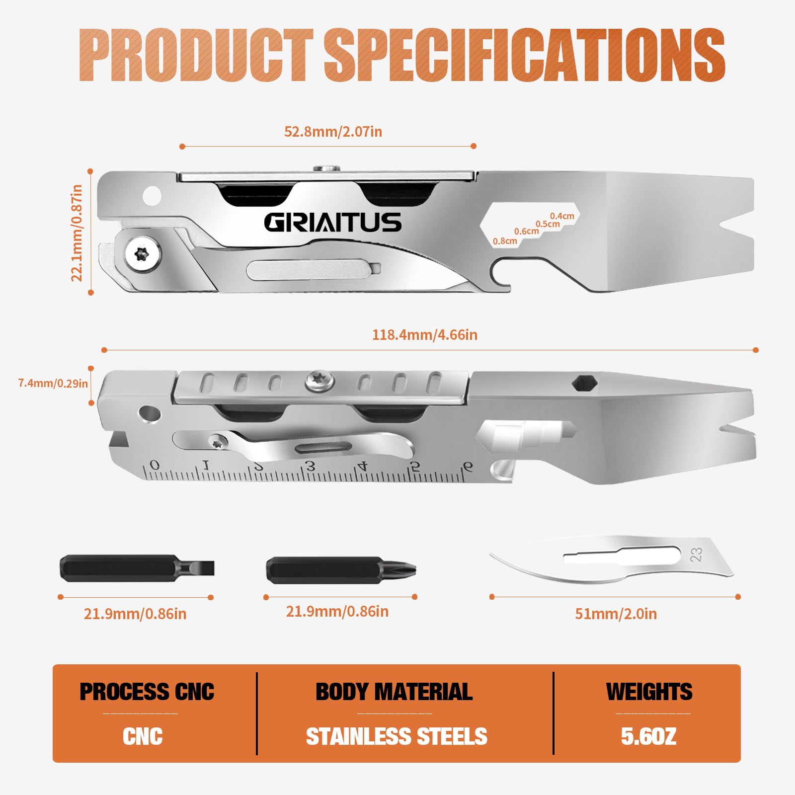 -Multitool Tool for Prying: Measures 0.23lb, 4.6*0.86*0.3 inch. Lightweight and small, longest lasting striking tools, this multitool box cutter for backpacking, hiking, hunting,outdoors activities. An ideal christmas stocking stuffers gifts for men