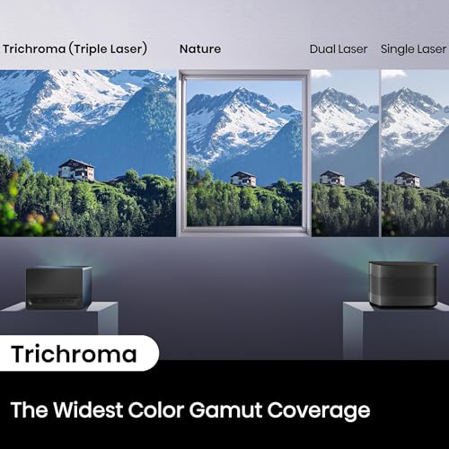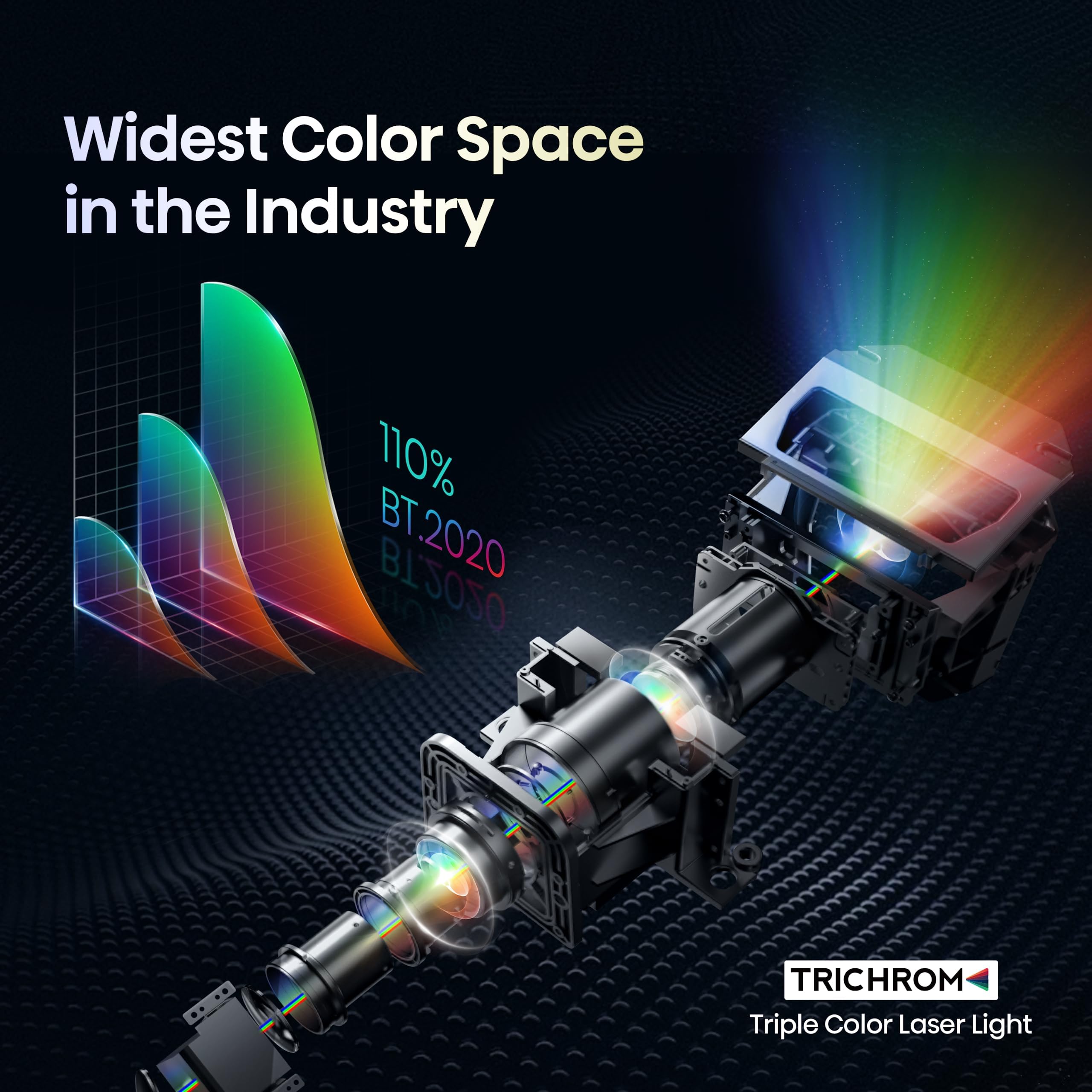 -Triple Laser Light Source: Leverage the Triple Laser light source, covering 110% of the BT.2020 color gamut with a Delta-E score of 0.9 for color accuracy. The durable laser light source provides over 25,000 hours of entertainment.