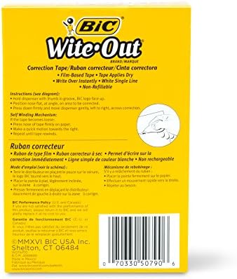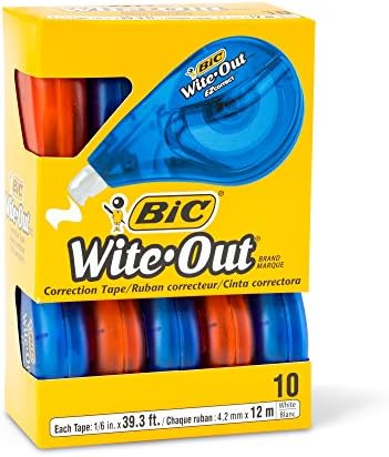 Cinta de corrección correcta EZ de la marca BIC Wite-Out, blanca, 10 unidades