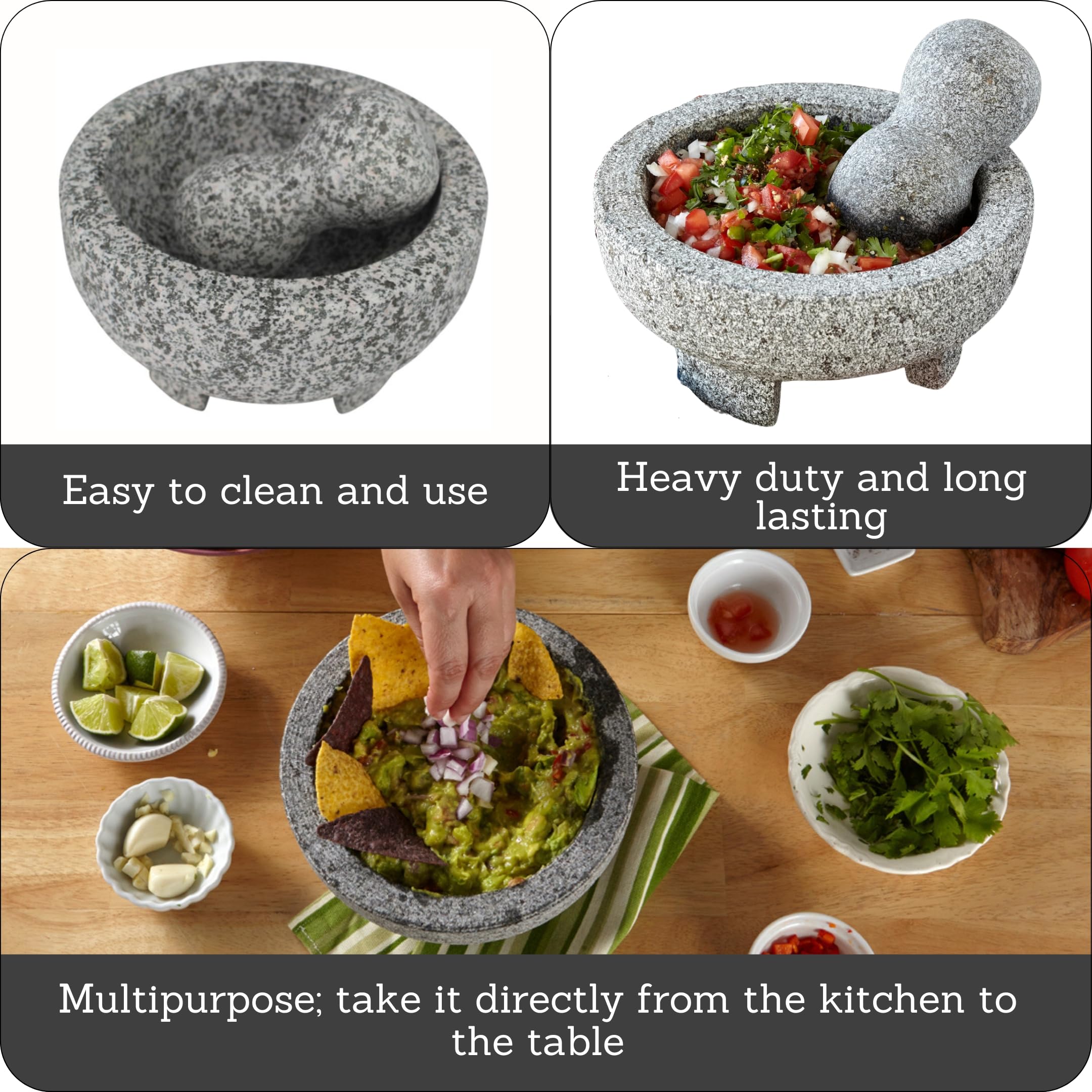 -USAGE: This versatile kitchen tool is perfect for making guacamole, mole, and salsa, as well as crushing, grinding, and mashing garlic, ginger, pepper, spices, vanilla, and more, its multipurpose design makes it suitable for various culinary tasks