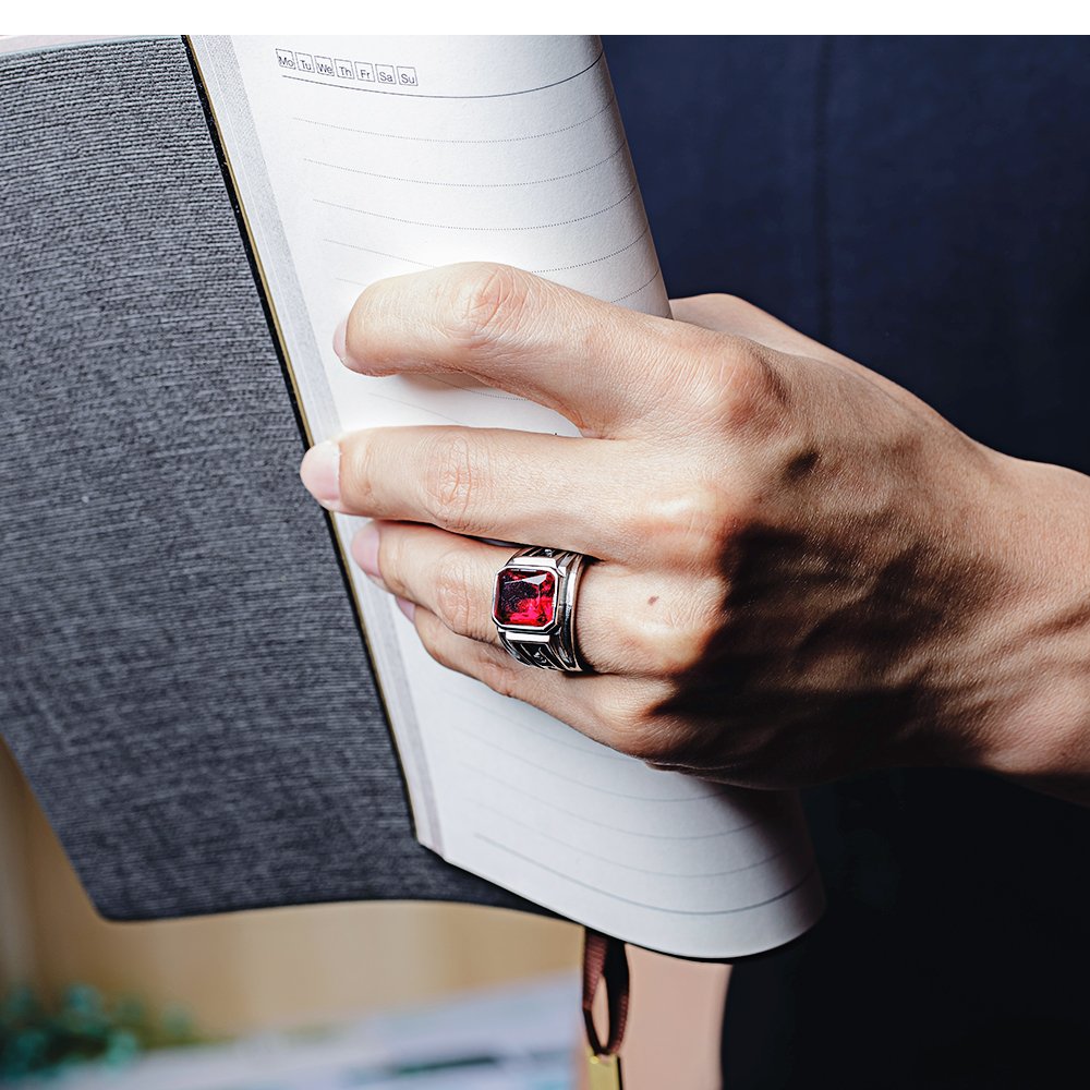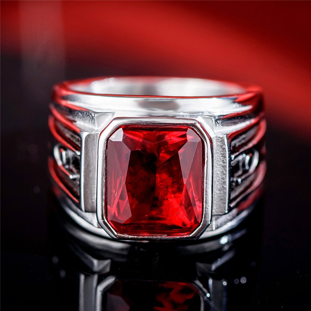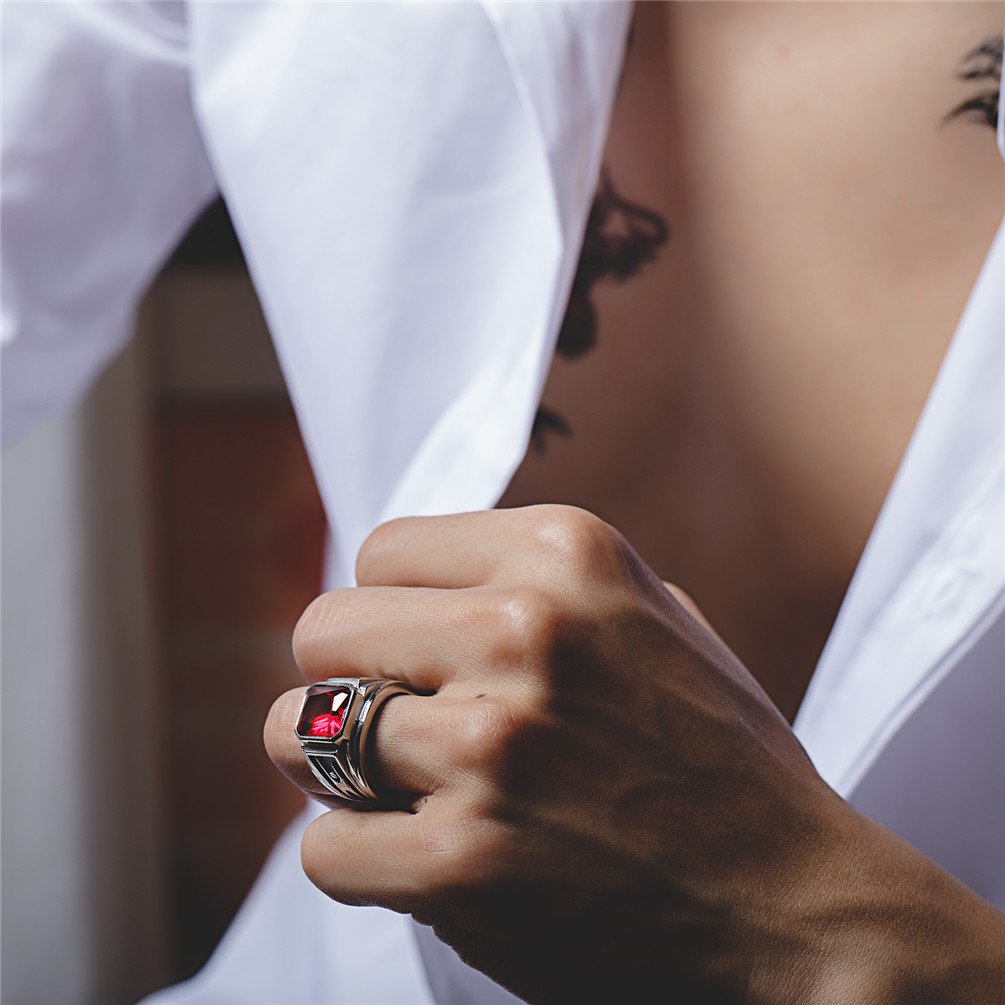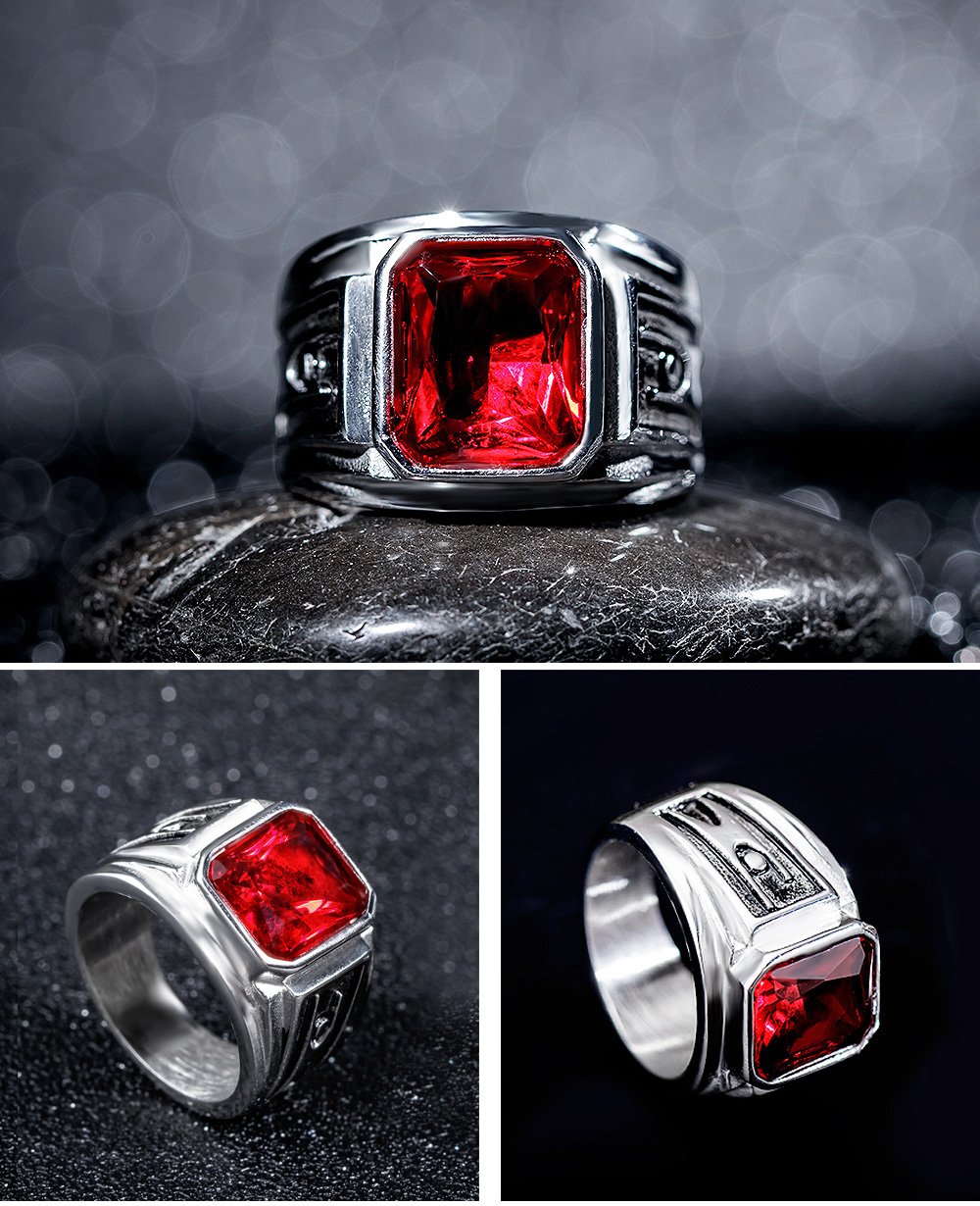 -Cool handsome statement rings for men, black and ruby glass stone inlay