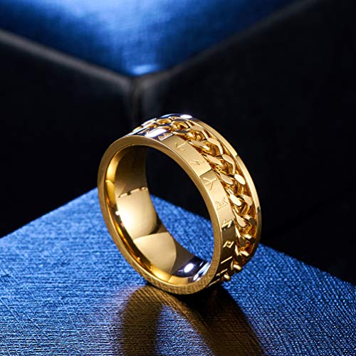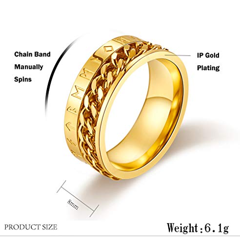 INRENG Hombres 8MM Cadena de acero inoxidable Spinner Ring Band con Viking Rune Odin Norse Text Jewelry
