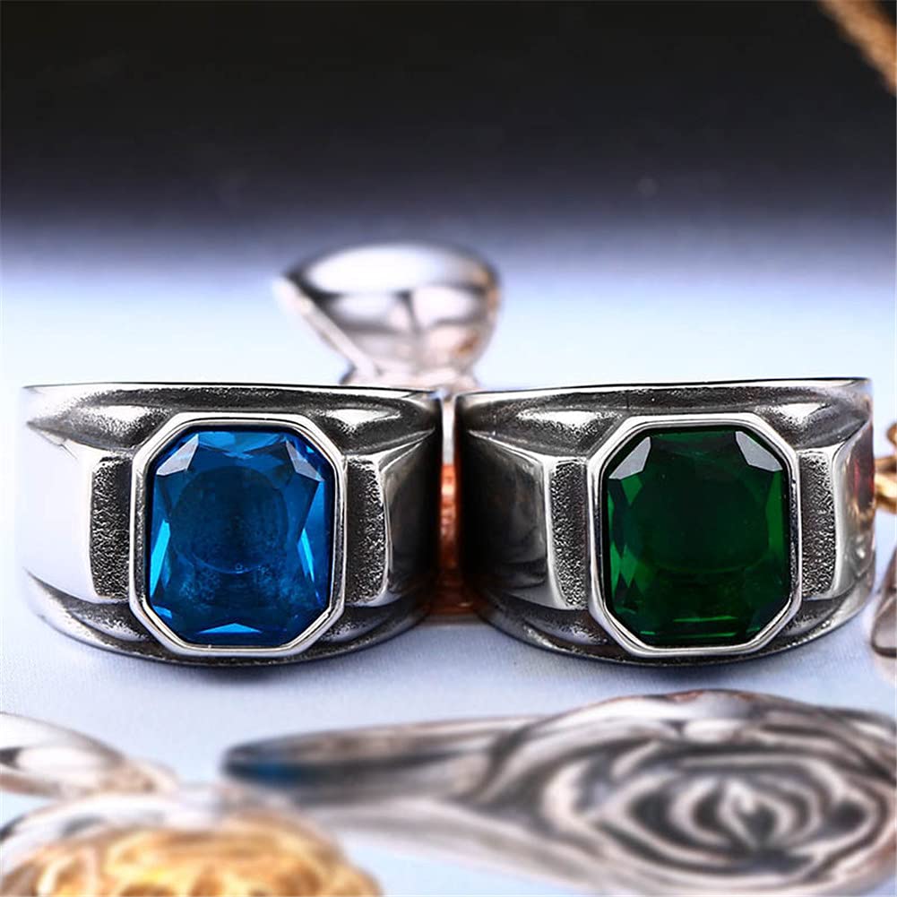 -Cool statement gemstone rings for men women, blue and green glass stone inlay
