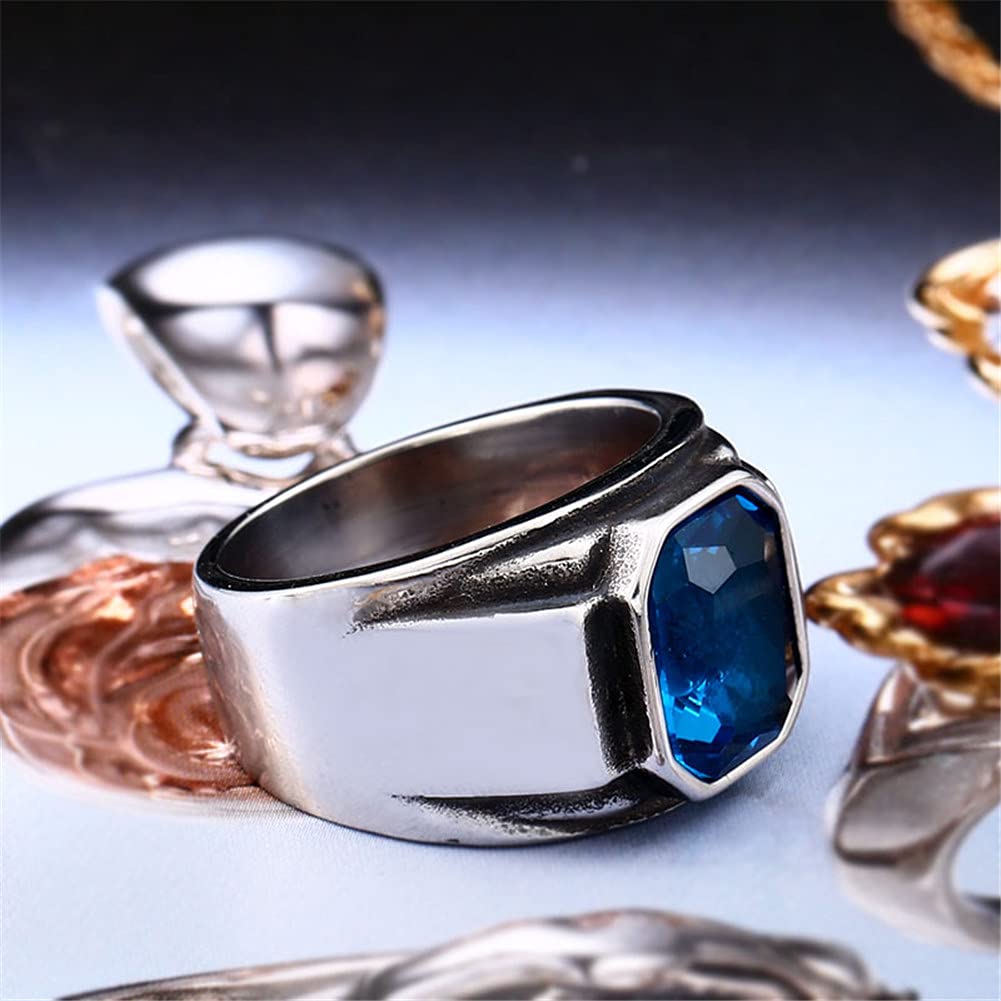 Inreng acero inoxidable anillo de piedra cuadrada de acero inoxidable para hombres Mujeres Signet Biker Band Silver Blue Size 11