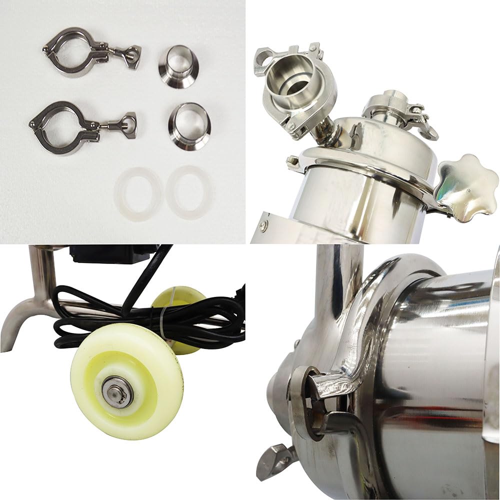 INTBUYING Bomba centrífuga de grado alimenticio 304 Acero inoxidable 3T Bomba de bebidas sanitarias Transferencia para líquido móvil 110V/0.75KW