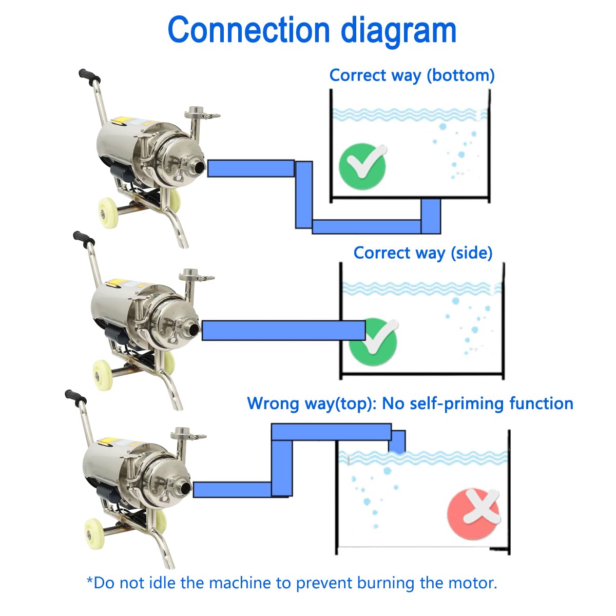 -[Warning] Don’t switch on the pump when it is empty.Don’t idle the machine to prevent burning the motor.Don’t use strong acids, alkali liquids, strong spirits, paste or viscous liquids, such as butter, peanut butter, honey, etc