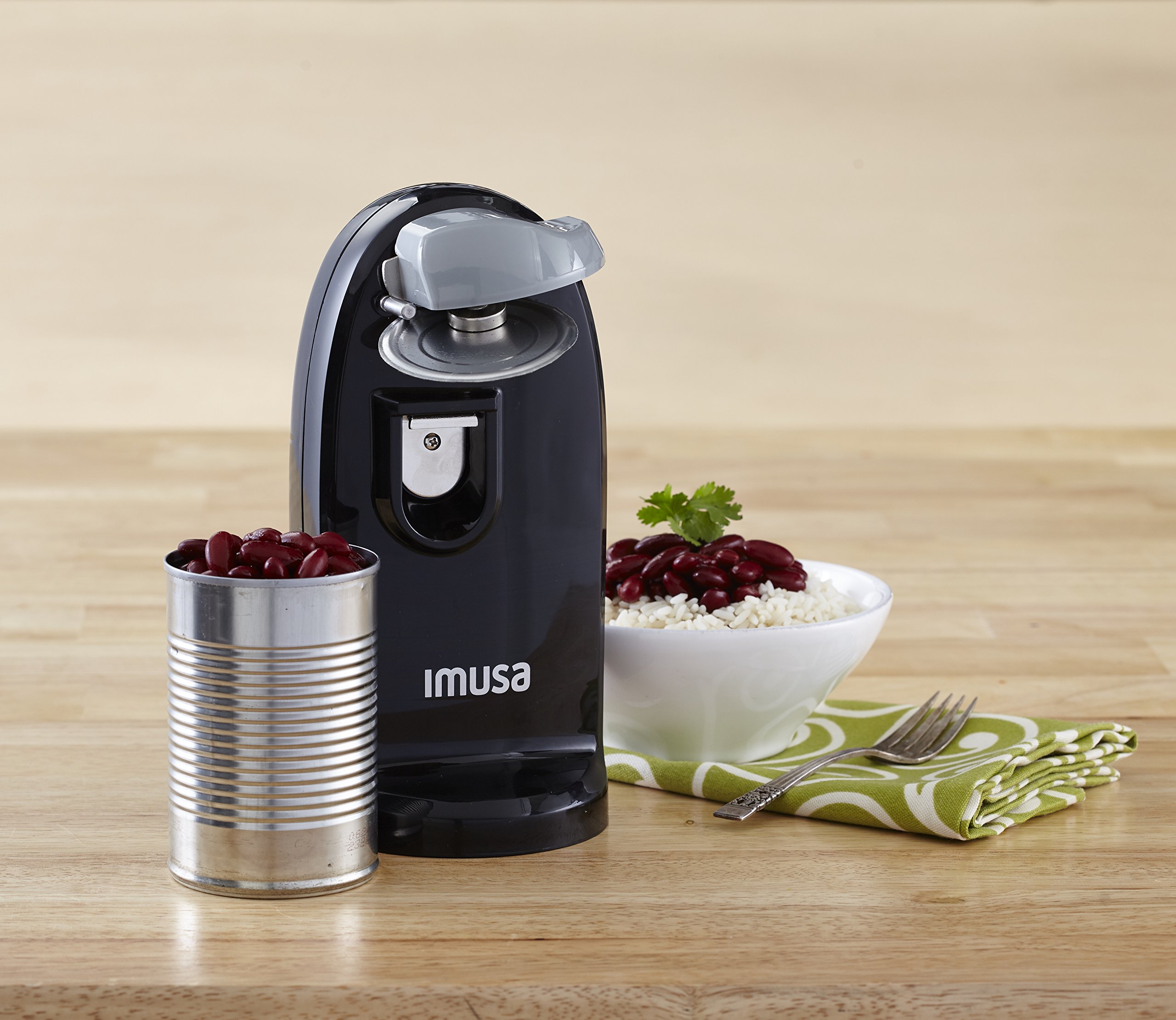 IMUSA USA Electric CAN APROL con abrel de botella y afinador de cuchillos, negro