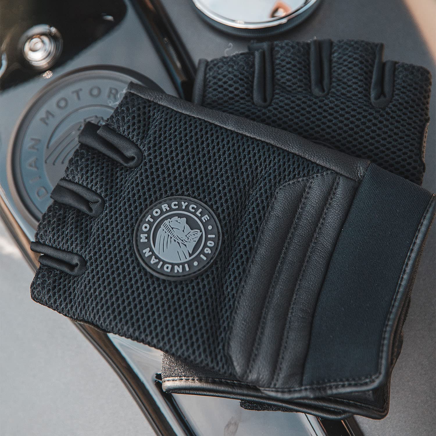 Indian Motorcycle Tobin - Guante sin dedos para hombre, color negro