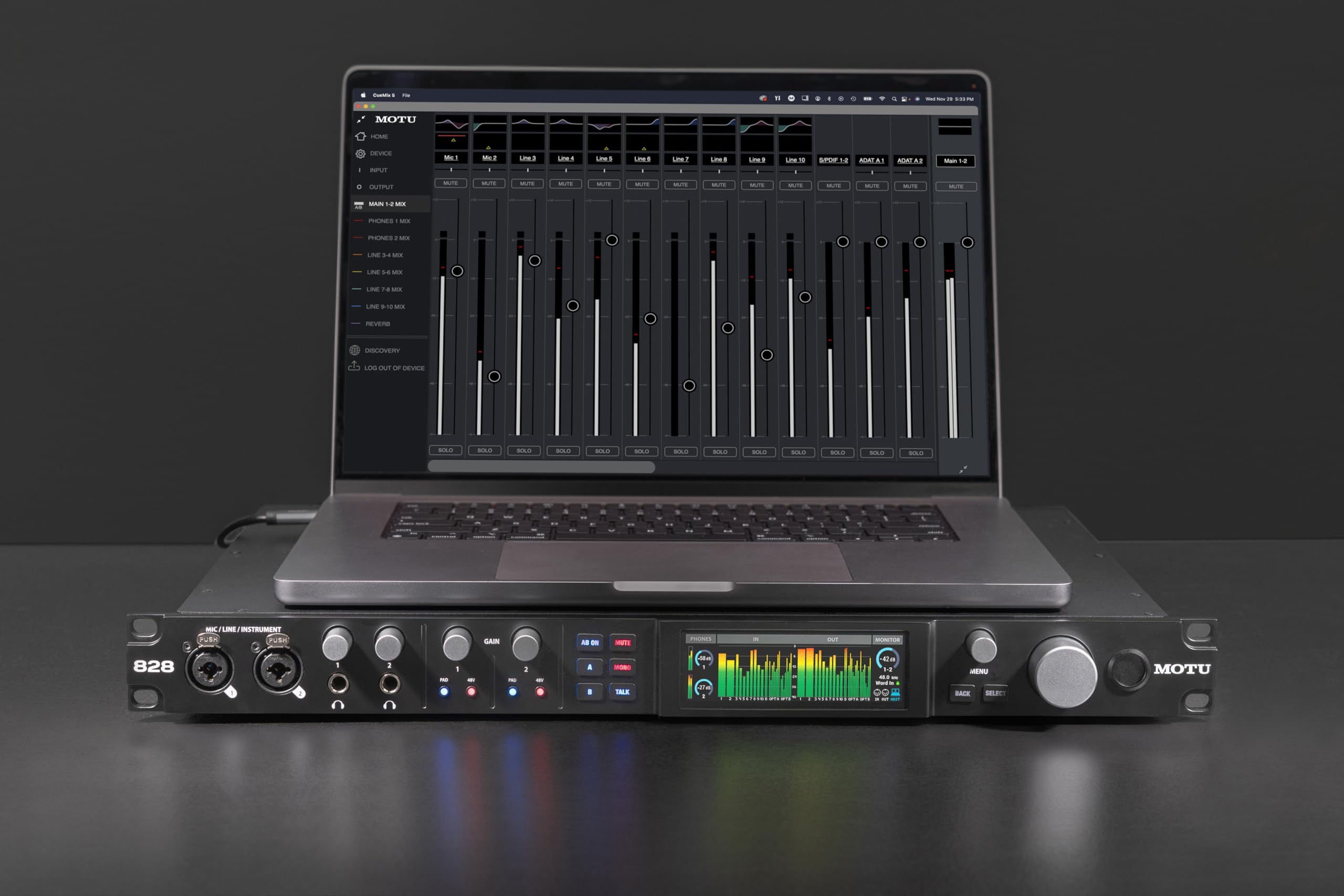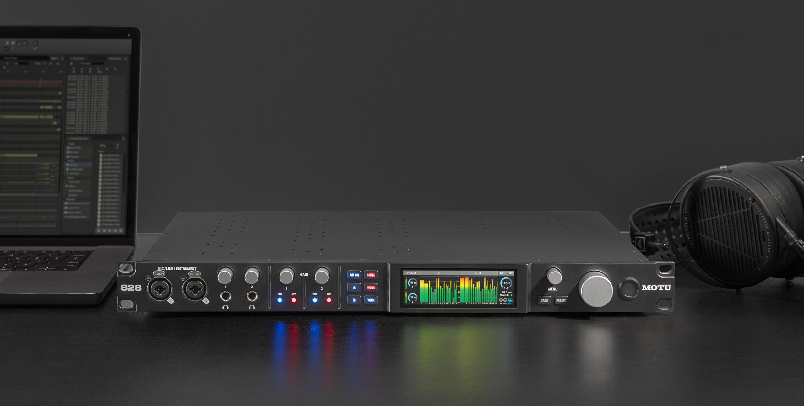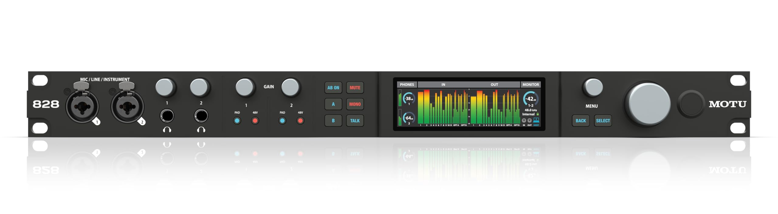 Interfaz de audio MOTU 828 28x32 USB3 para Mac, Windows e iOS con mezcla y efectos