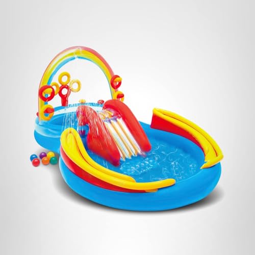 -✔ ALL THE FUN INCLUDED – The Rainbow Play Center includes a wading pool, main pool and escape down the water slide for added fun! Your child will enjoy the fun water sprayer to keep cool, along with the ring toss game, ball roller game, and ball toss game
