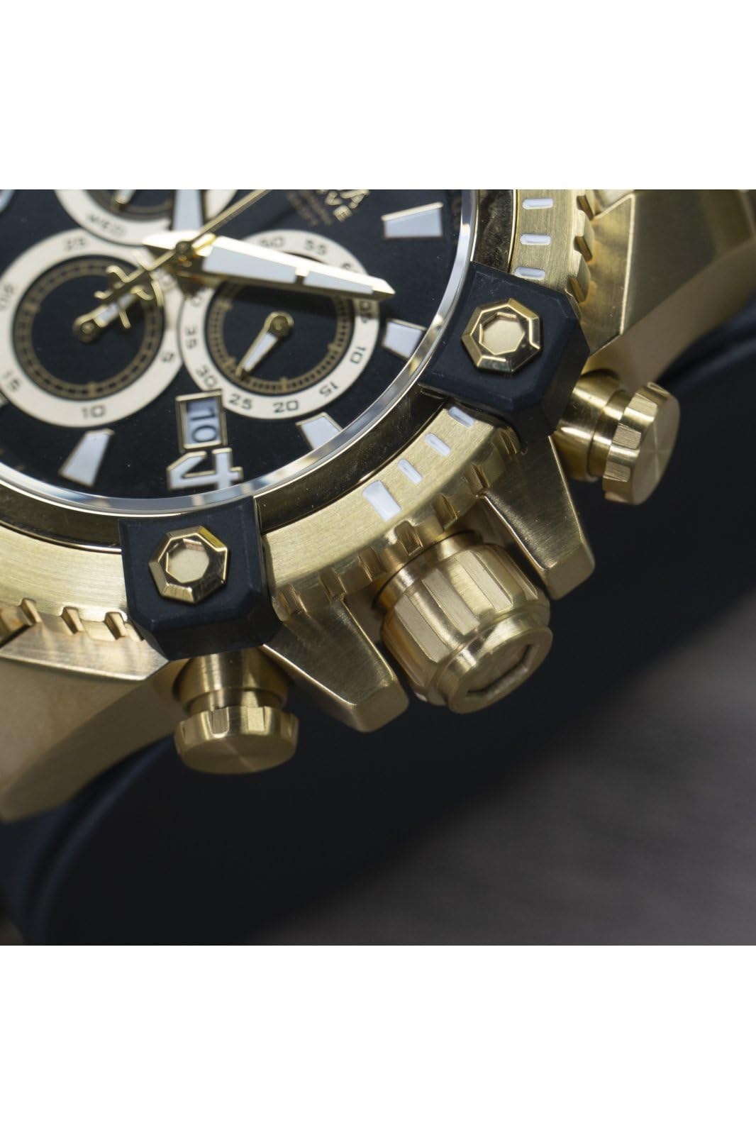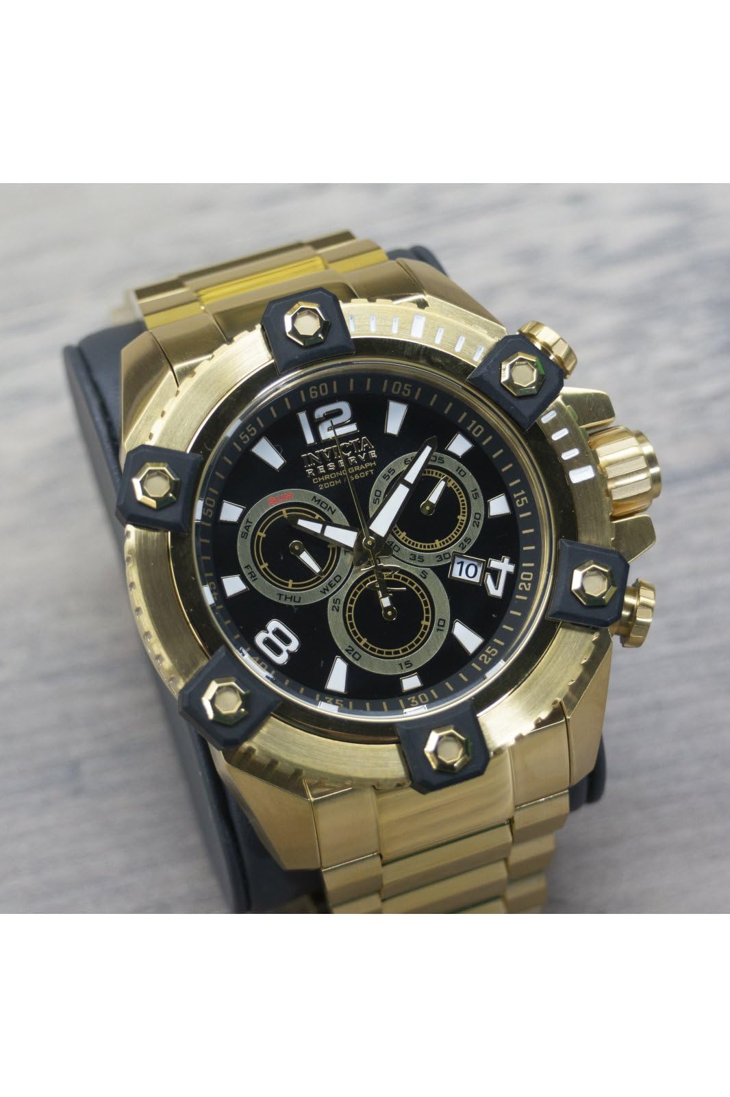 Description Product Description With a bold design, this Invicta chronograph has a poised and calm ambience that’s sure to have you looking twice. From the Manufacturer Sporting an intricate design and sub dial system, this bold Invicta chronograph is precise on time and measurement.