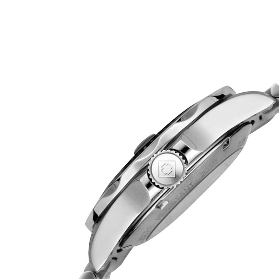 -Mineral crystal; Screw-down crown; Unidirectional stainless steel bezel with black top bezel ring; 200 meter water resistant: Suitable for professional marine activity and surface water sports. Suitable for diving.