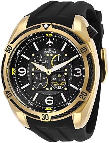 Reloj de cuarzo de acero inoxidable Aviator para hombre Invicta con correa de silicona, negro, 32 (modelo: 28079)