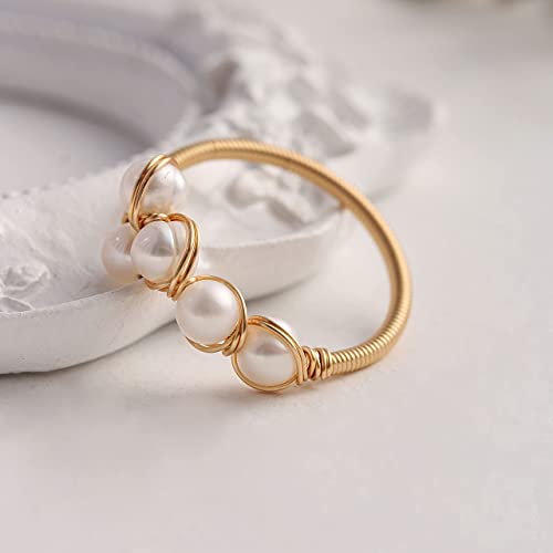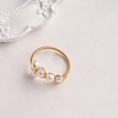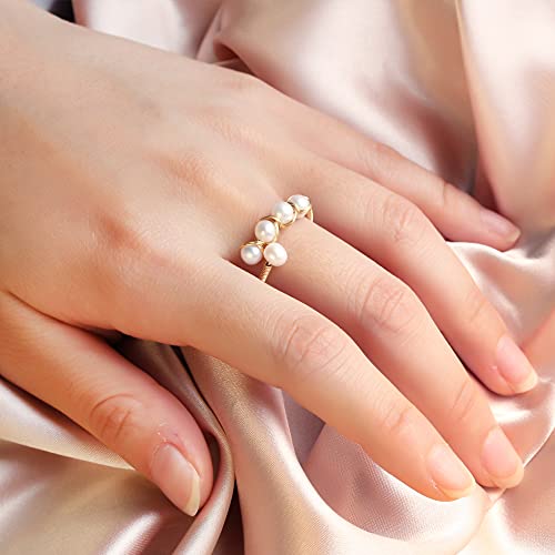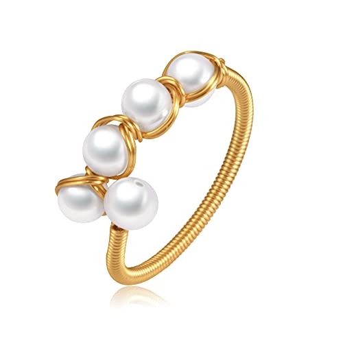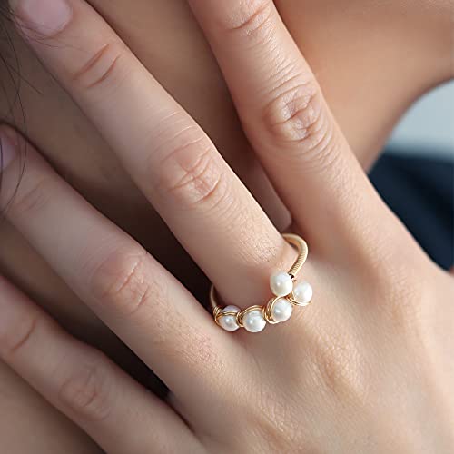 Anillos de ansiedad chapados en oro de 14 quilates para mujeres, cuentas de perlas de cristal rosa, anillos abiertos, anillos delicados y modernos para niñas adolescentes (cristal 4)