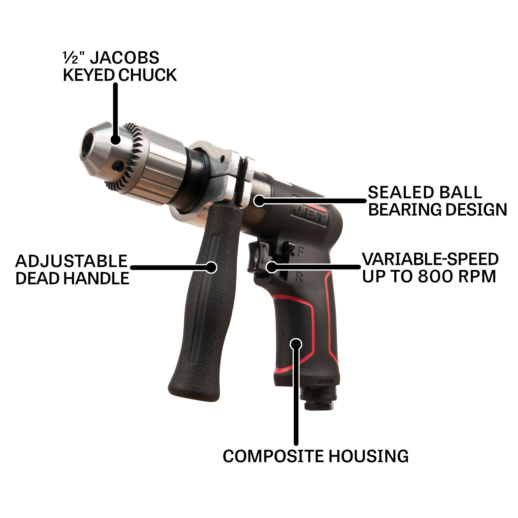 Taladro neumático reversible JET de 1/2 pulgada, 800 RPM (modelo JAT-621)