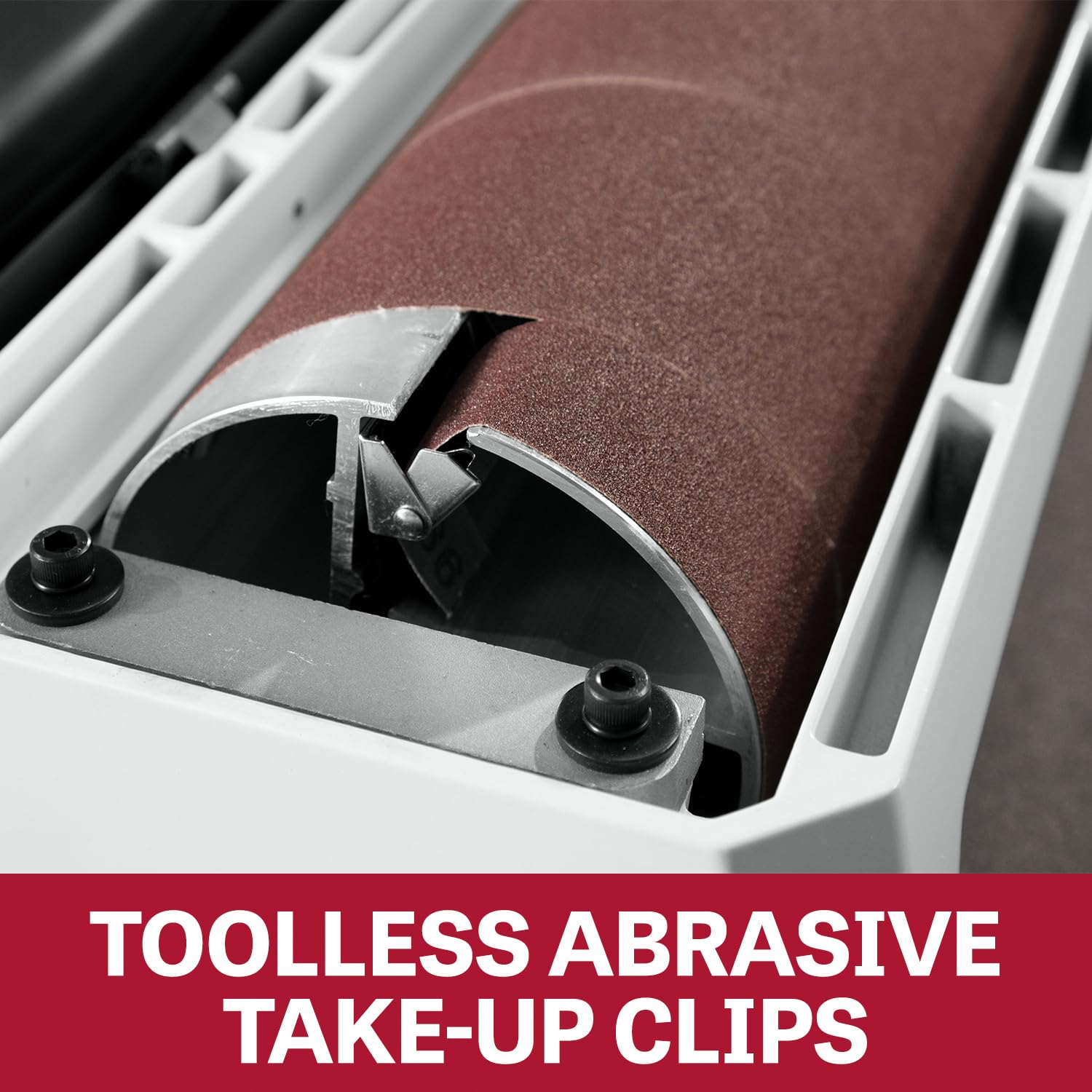 -Conveyor bed parallelism is easily adjusted by turning the dial on the outside of the bed - no tools required
