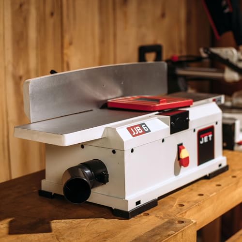 The JET 6-Inch Benchtop Jointer provides a smooth and consistent cut surface thanks to its use of 14 carbide-tipped helical head blades. Heavy-duty cast iron tables and a fully adjustable fence make for a premium cutting experience. Features include a fully adjustable cast iron fence, an internal dust collection system, safety switch and push stick.