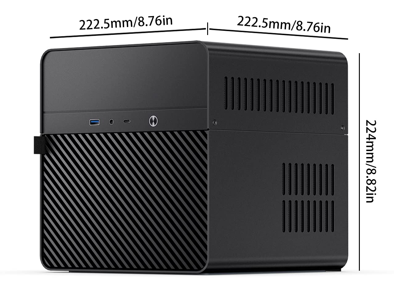 -JONSBO N2 Black NAS ITX Case 5+1 Disk Bays Mini Aluminum Case, PC case 5+1-Disk Bays NAS Mini Aluminum Chassis 5x3.5” HDD + 1x 2.5”SSD Size : W222.5 x D222.5 x H224mm/ 8.86x8.86x8.82 in,Easier to build your PC + Personal/Home Server,More convenient