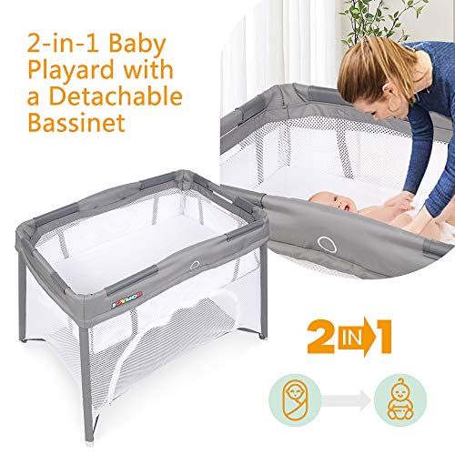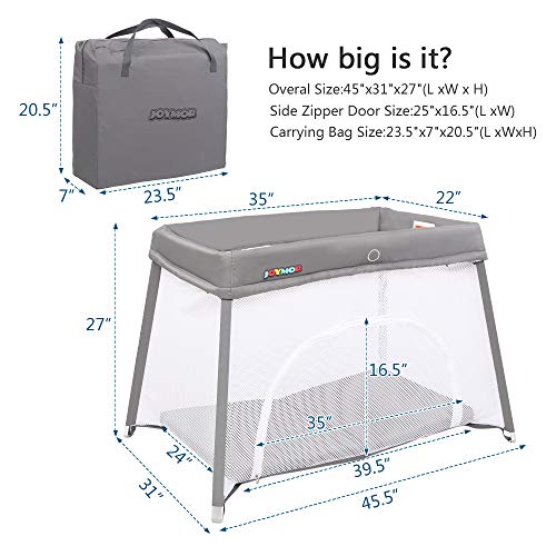 JOYMOR 2-in 1 Travel Cuna Pack 'n Play Yard con moisés, liviano y portátil para bebés sin instalación para bebés / niños pequeños con colchón, bolsa de transporte
