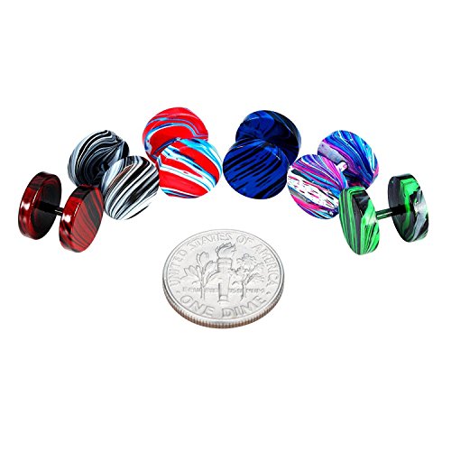 - FAUX GAUGES PLUGS EARRINGS SET: Comes with 6 PAIRS (12 PIECES) fake ear plugs in 6 Different Colors and Patterns.