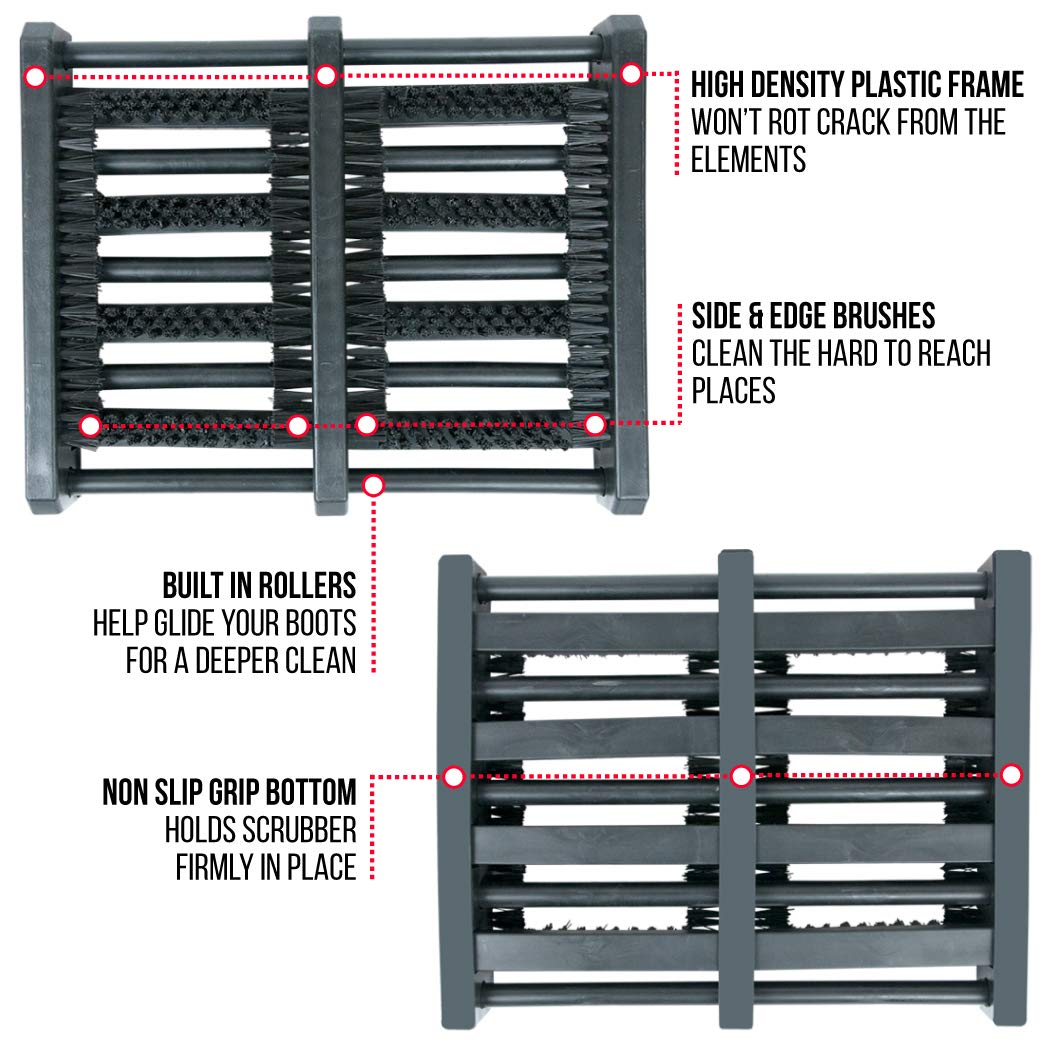 JobSite Boot Scrubber Brush Mat is the perfect cleaning tool to have by every door in your house. Heavy-duty, practical, and easy to use. Scrubber brush cleans dirty boots and shoes in just a few scrapes. Keep the mess outside and keep your house clean! As Seen on TV!