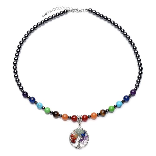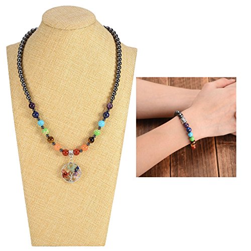 - Bracelet Size: Stone Diameter:8mm. 7 inches (17.8cm) Length but Stretch, Fits Most of the Size. Necklace Size: 7 chakra gemstones Diameter:8mm.Hematite Beads:6mm,Spacer Beads:4mm; Tree of life Charm size: 30*25mm. Chain Length:19.5"-21.5". Package Content:1pcx Bracelet,1pcx Tree of Life Necklace. Each order comes with Elegant Gift Box and JOVIVI Velvet Pouch! Shiny polished stone bracelet is a wonderful gift for your family and friends
