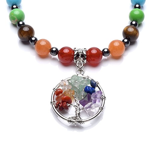 - Necklace Material: Alloy; Tree of Life Tumbles Gemstones: Amethyst,Clear Quartz,Dyed Lapis Lazuli,Green Aventurine,Yellow Aventurine,Red Agate,Red Jasper.