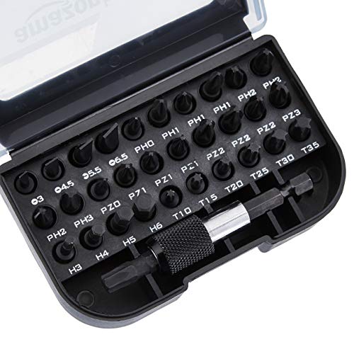 - Make sure this fitsby entering your model number. - 32-piece impact driver bit set; ideal for use on electronic devices, home appliances, furniture, and more - Includes 31 bits and a magnetic bit holder (scroll down the page for a full list of included pieces) - Made of durable, wear-resistant S2 steel with a black finish for rugged, reliable strength - Sturdy plastic case provides designated storage space and easy transport - Backed by an Amazon Basics limited 1-year warranty An Amazon Brand
