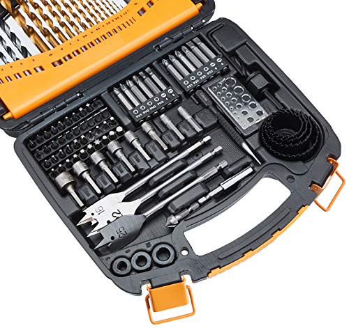 - Make sure this fitsby entering your model number. - 100-piece drill and driver multi-bit set; ideal for metal, wood, plastic, masonry, and hole saws - Includes 52 bits, 8 nut sockets, a magnetic bit holder, 4 hole saws, and more (scroll down the page for a full list of included pieces) - Made of durable, wear-resistant alloy steel with quenching treatment - Sturdy plastic case provides designated storage space and easy transport - Backed by an Amazon Basics limited 1-year warranty An Amazon Brand