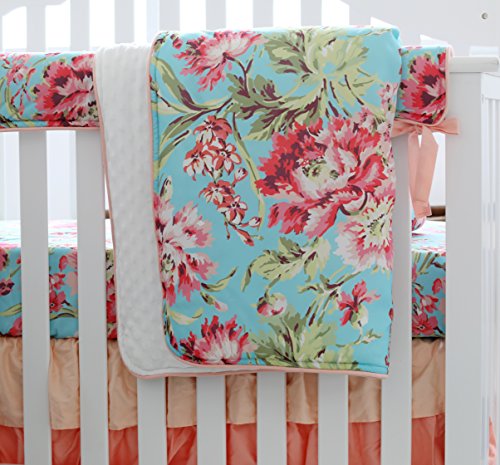 Juego de cama para cuna de bebé Sahaler para niñas y niños | Juego de 4 piezas de ropa de cama de vivero floral | Manta para bebé y sábanas ajustables para cuna y falda y funda de riel - Aqua