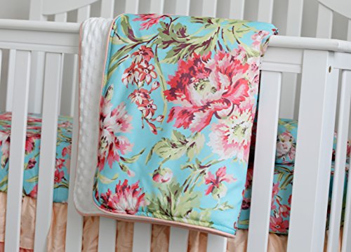 Juego de cama para cuna de bebé Sahaler para niñas y niños | Juego de 4 piezas de ropa de cama de vivero floral | Manta para bebé y sábanas ajustables para cuna y falda y funda de riel - Aqua Juego de cama para cuna de bebé Sahaler para niñas y niños | Juego de 4 piezas de ropa de cama de vivero floral | Manta para bebé y sábanas ajustables para cuna y falda y funda de riel - Aqua