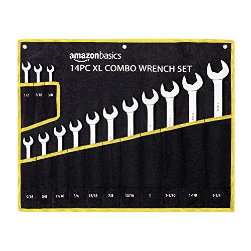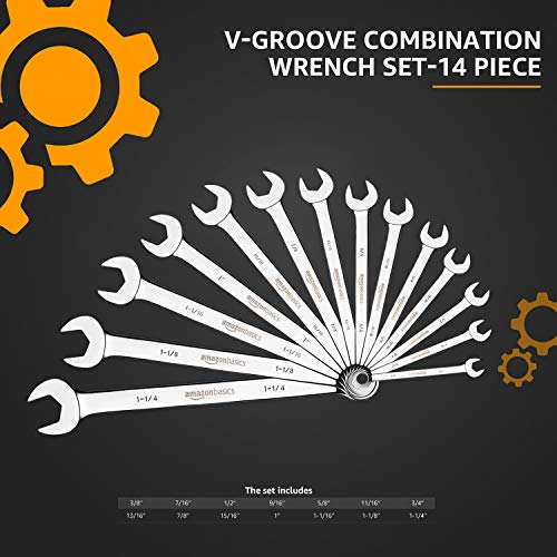 Juego de llaves combinadas con ranura en V de Amazon Basics, SAE, 14 piezas