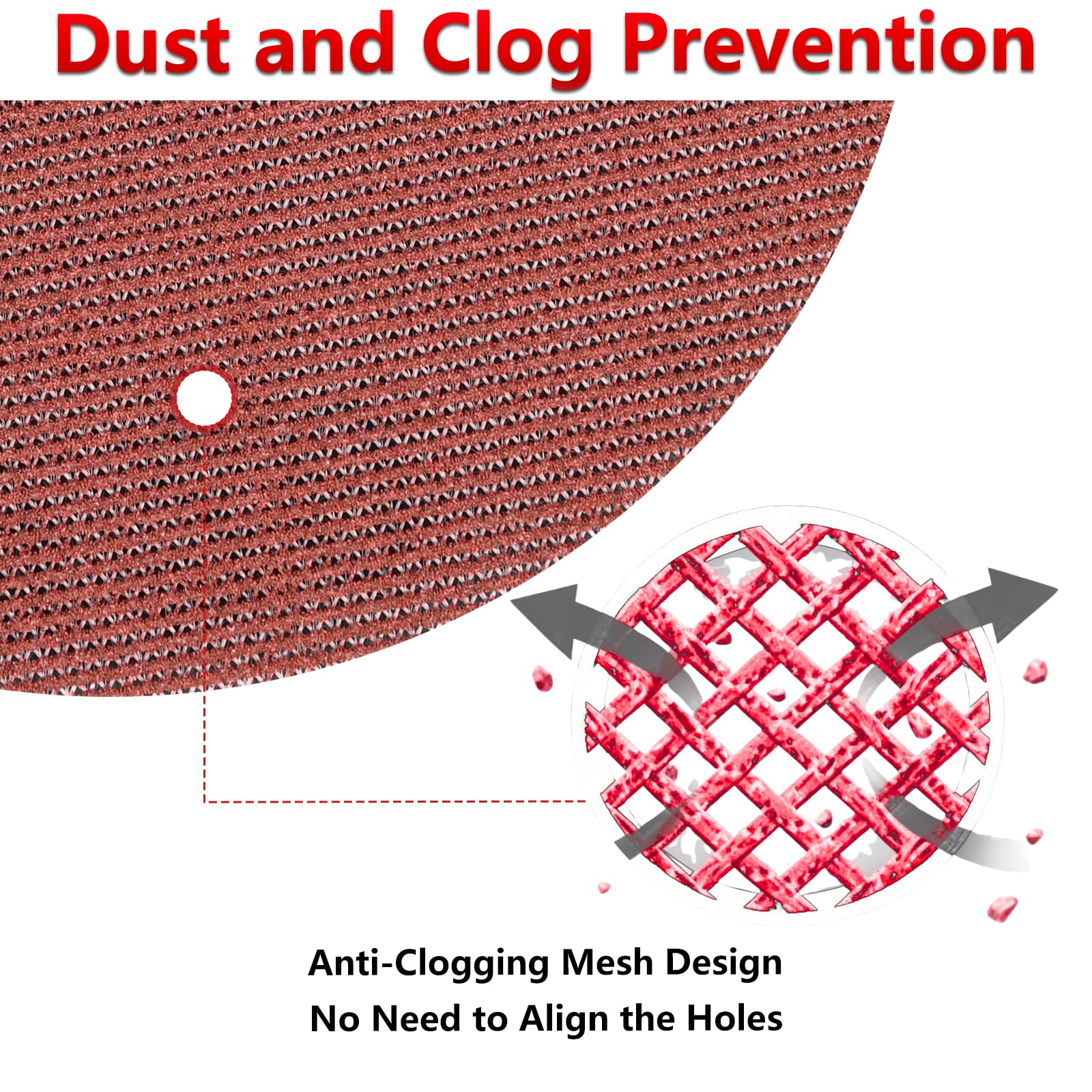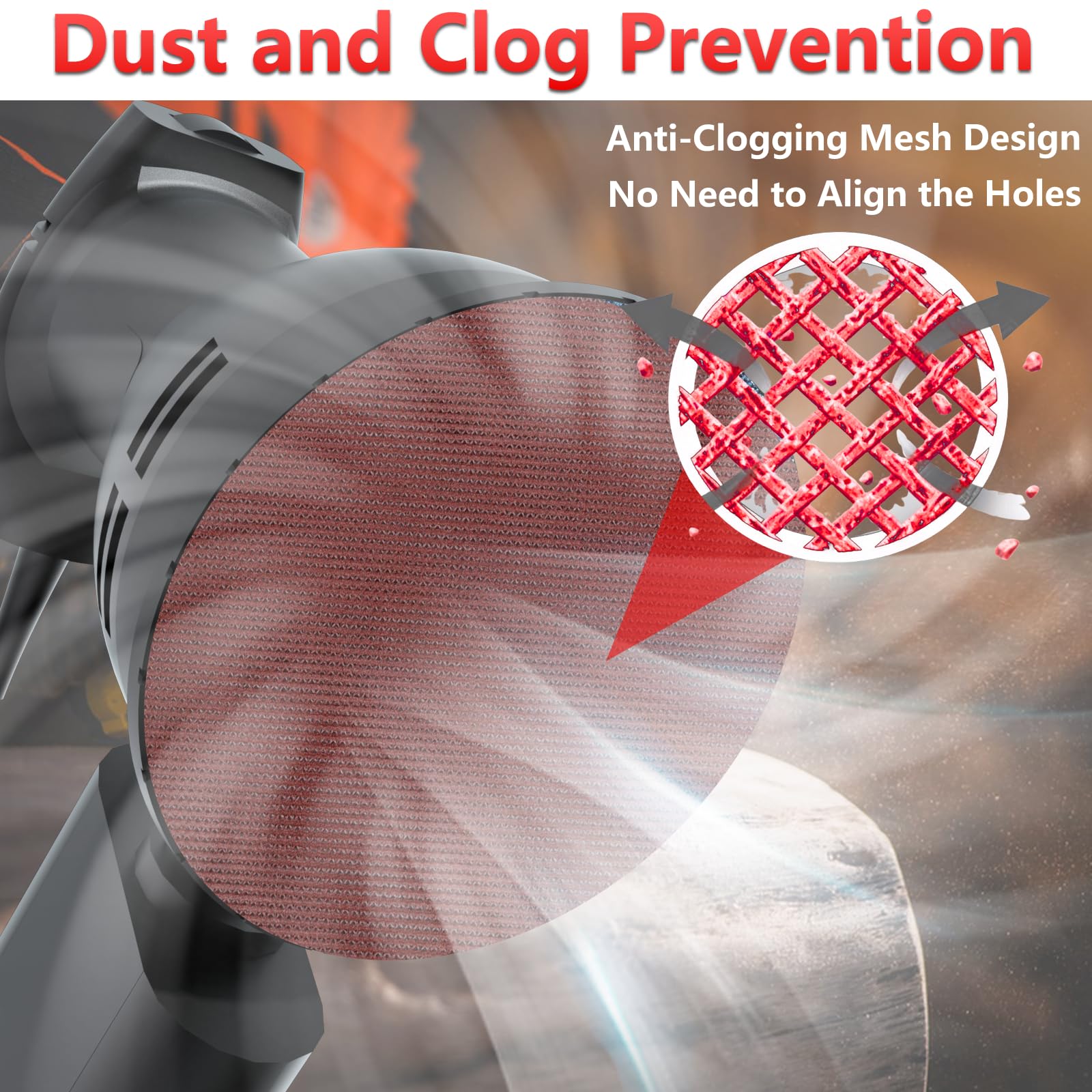 -Forget Hole Alignment: Our 5 inch mesh sanding discs fit any backing pad (8-hole, 10-hole, etc.) effortlessly. The open mesh design eliminates alignment hassles, saving you time and ensuring straightforward, clog-free operation with most 5-inch random orbital sanders