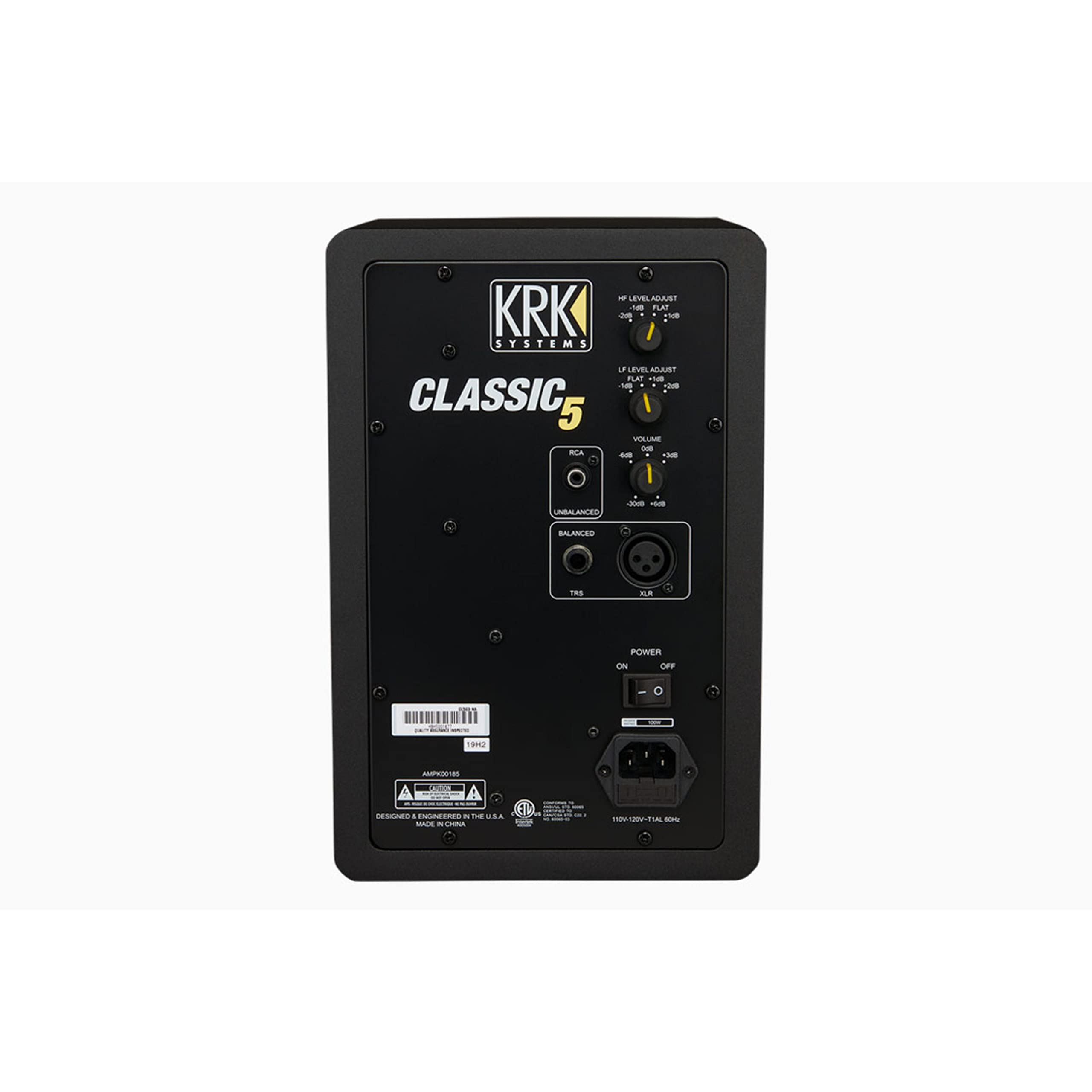 KRK Classic 5 Powered Studio Monitors incorporate over 30 years of innovation From the world’s leading studio monitor manufacturer. Borrowing concepts from the rokit line—one of the most used studio monitor lines in the world, The Classic 5 defaults to a new flat frequency solution towards more critical listening—transpiring into more accurate mixes. With the optional +2dB KRK bass boost, the Classic 5 holds true to the sound that music creators around the world have loved for years. The Classic 5 monitors deliver a multitude of features geared to meet the demands of today's competitive producers and engineers including an innovative class A/B amplifier with a built-in automatic limiter, a 1” soft dome tweeter and 5” glass-Aramid composite woofer, a waveguide designed to ensure detailed Imaging in the listening position, a front-slotted bass port to reduce boundary coupling and allow flexible positioning in the room, and multiple input connections to ensure the Classic 5 will easily integrate into any system configuration. Taking cues from one of the most used studio monitors in the world, The KRK Classic 5 is a valuable compact solution towards accurate mixes and productions.