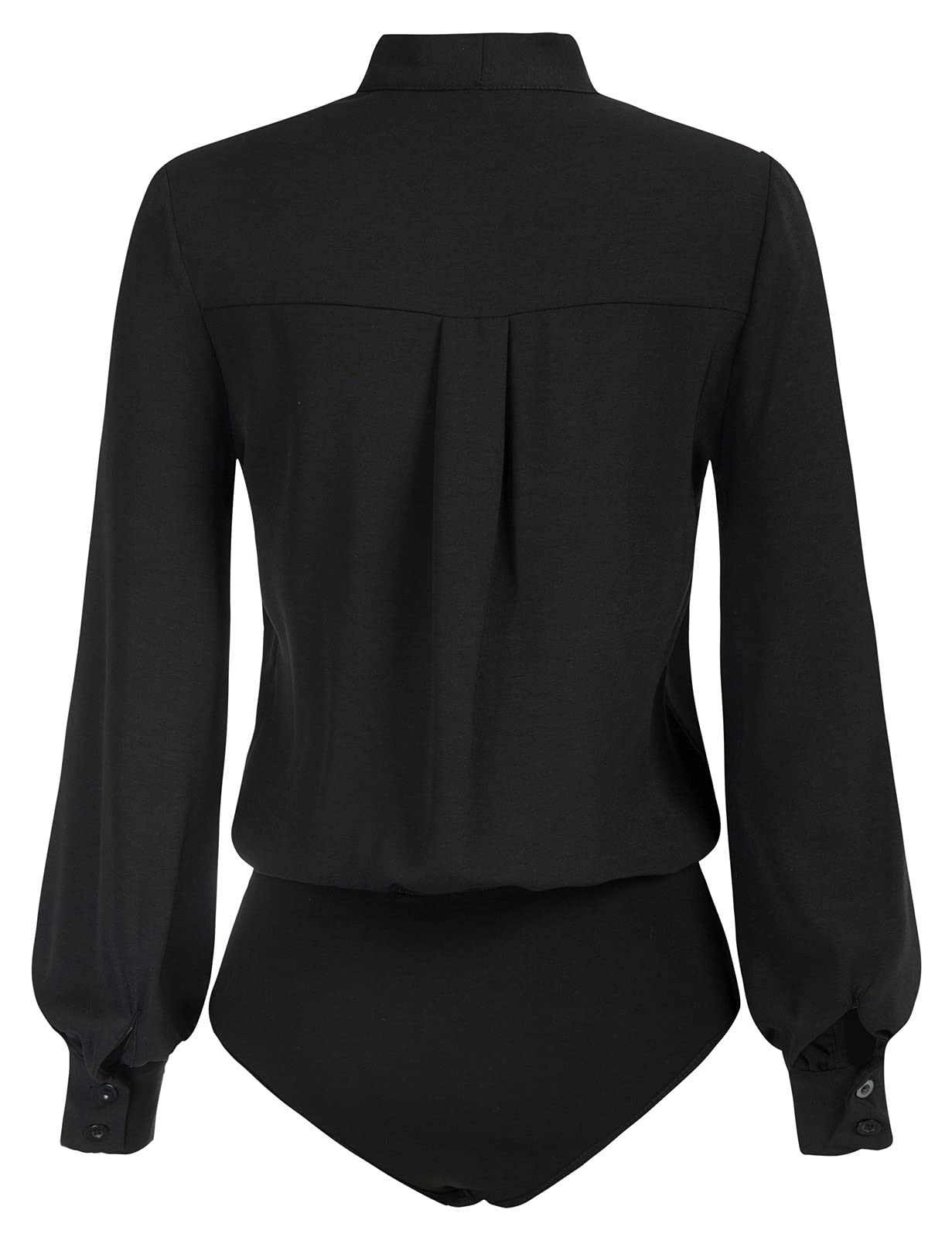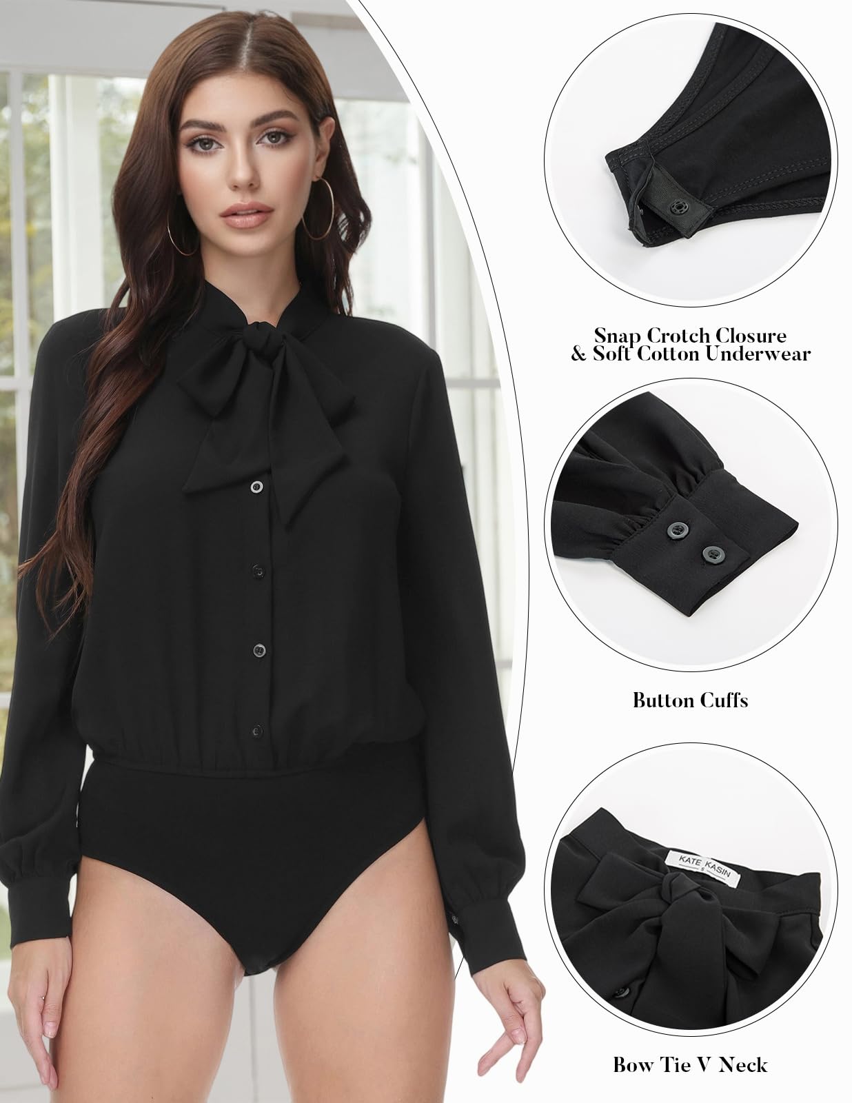 Kate Kasin Body negro para mujer Camisa de trabajo con botones Trajes casuales de negocios Tops de otoño Blusa de manga larga con pajarita XL