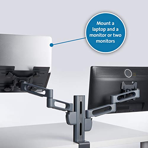 Boost your productivity while also reducing eye and neck strain-a solution from the brand with more than 20 years of expertise creating professional-level ergonomic solutions. The SmartFit Monitor and laptop mounting arm makes it easy to work on multiple documents or applications and to collaborate with colleagues. The heavy-duty Mini-C clamp is simple to install while using less desk space for a clean look. The built-in cable management system even helps reduce desktop clutter.