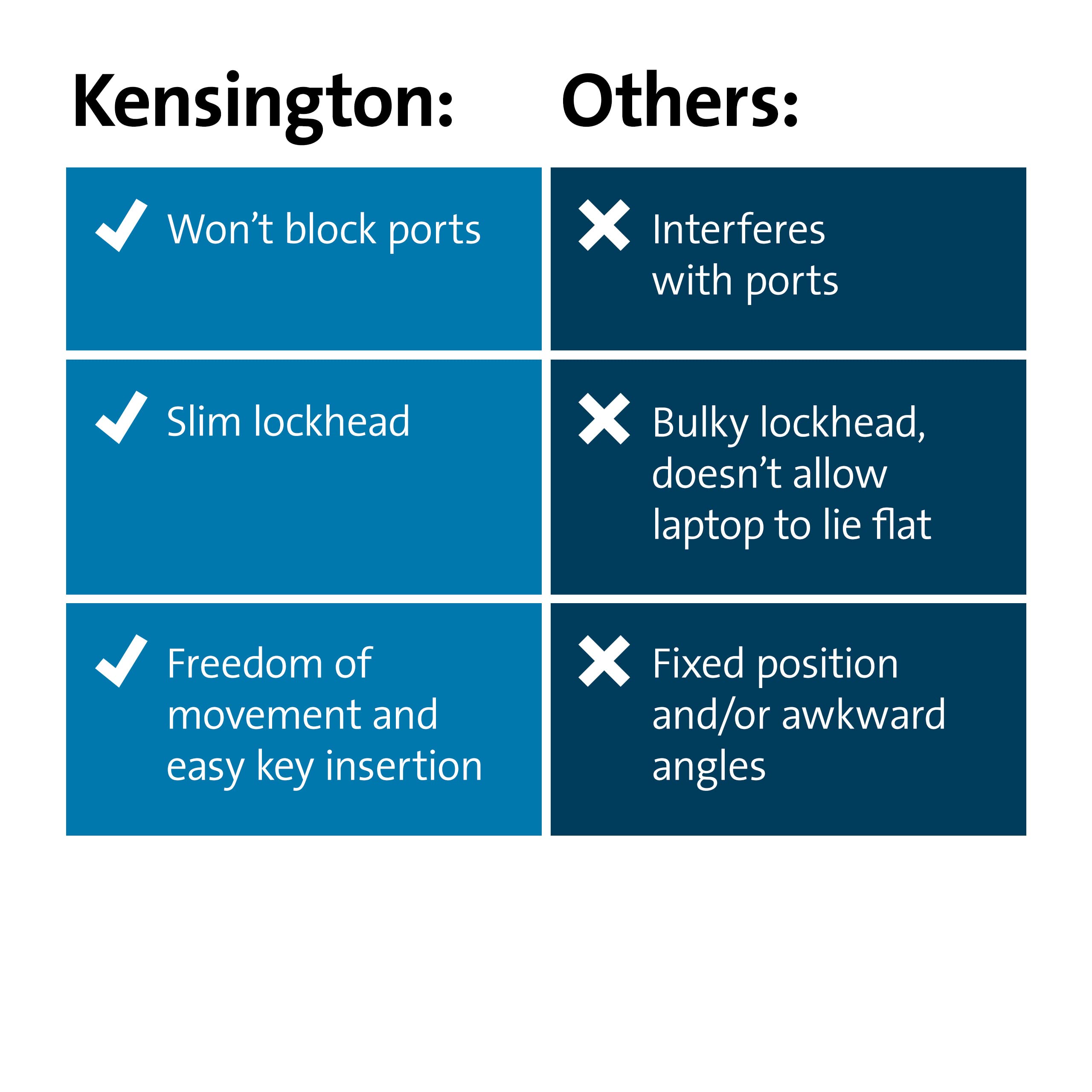 -5mm keying system is common across all of Kensington’s latest locks, so there’s only one keying system to manage