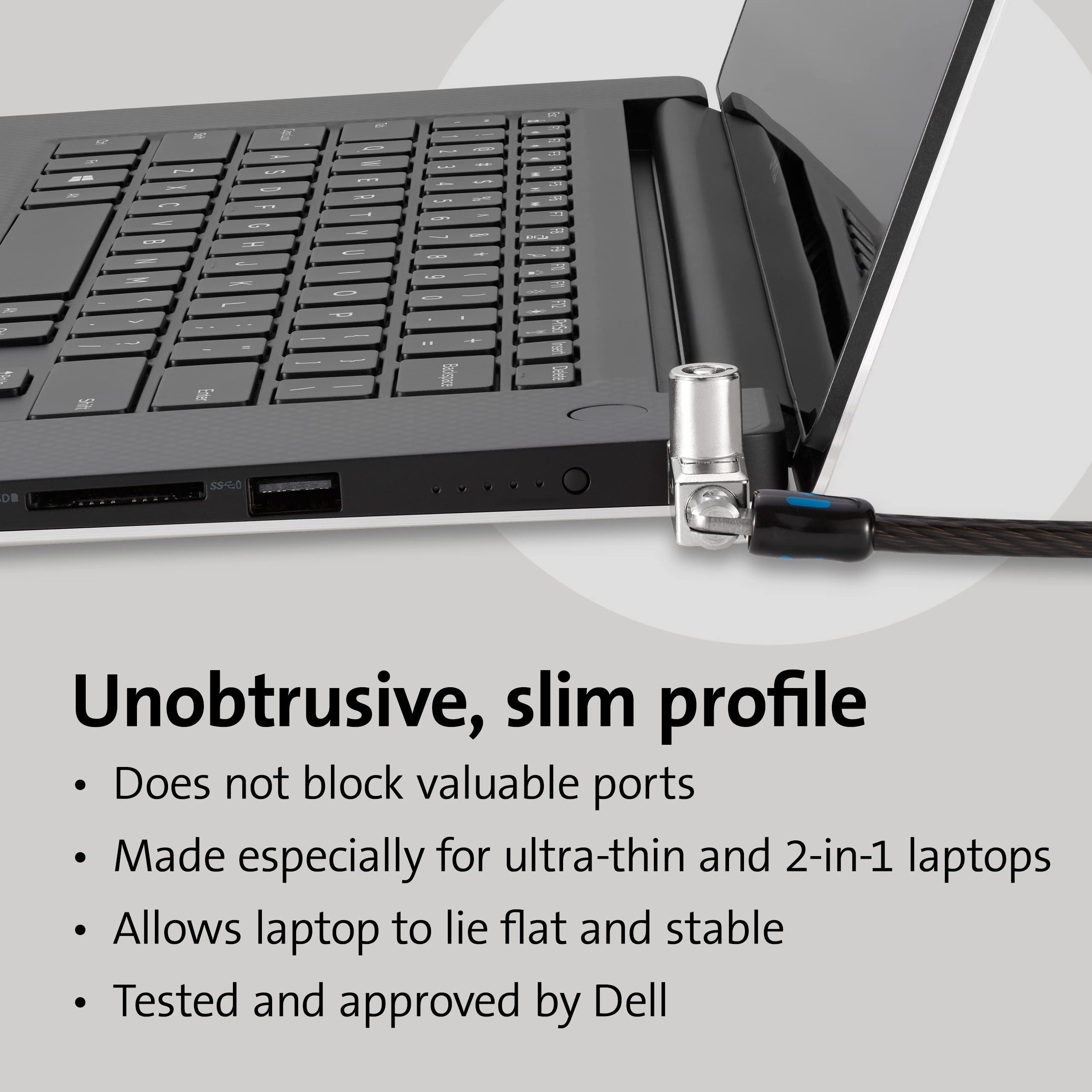 -Laptop lock for Dell and Alienware, slim lockhead works great for thin and 2-in-1 laptops; tested and approved by Dell